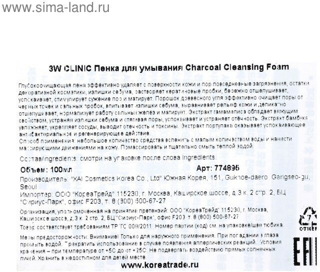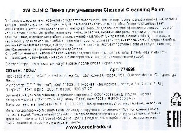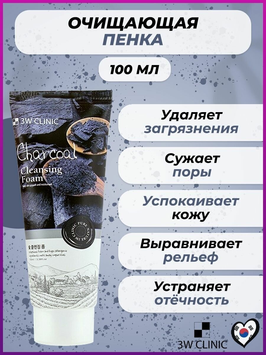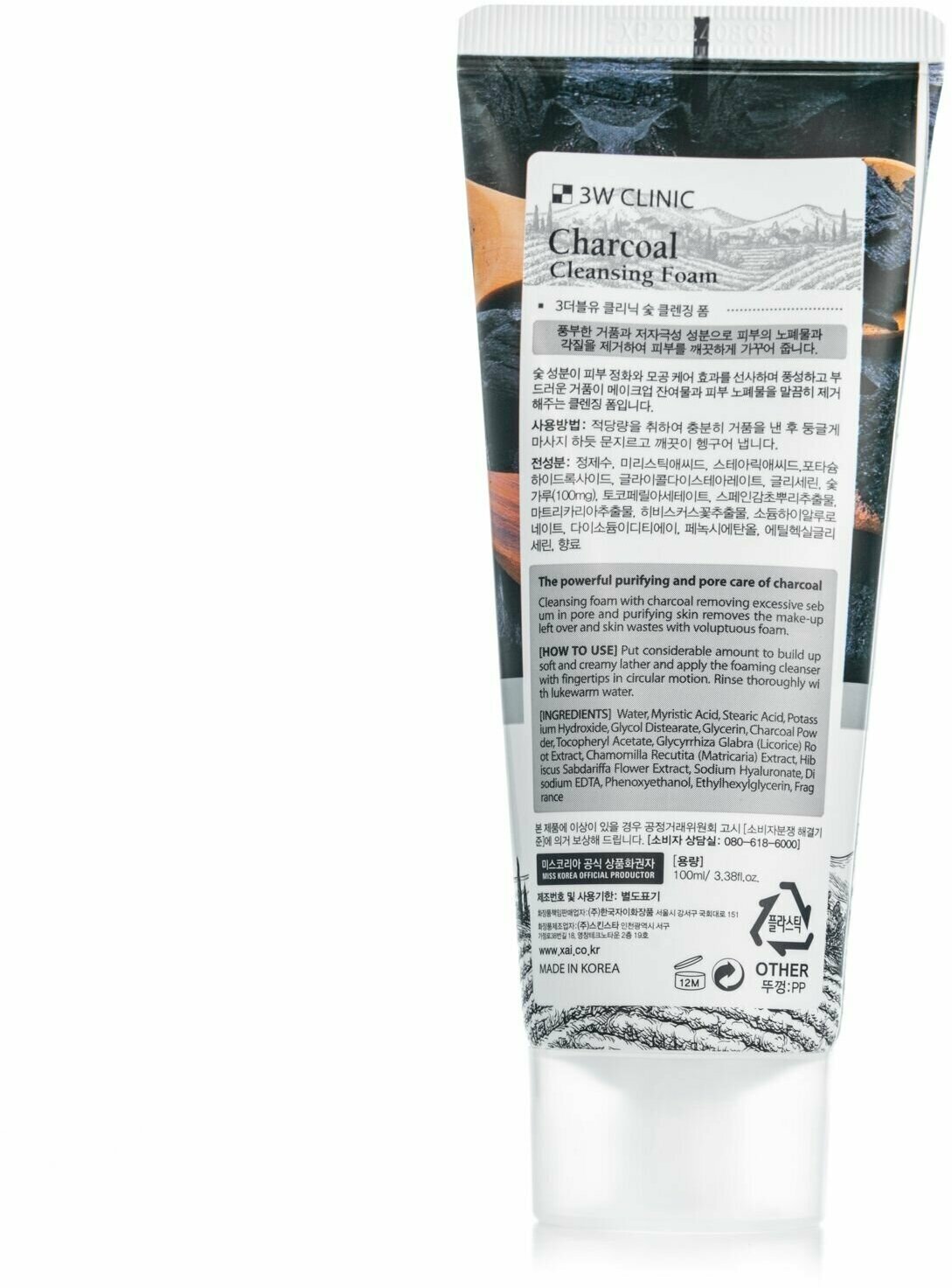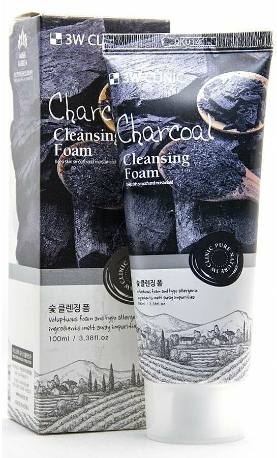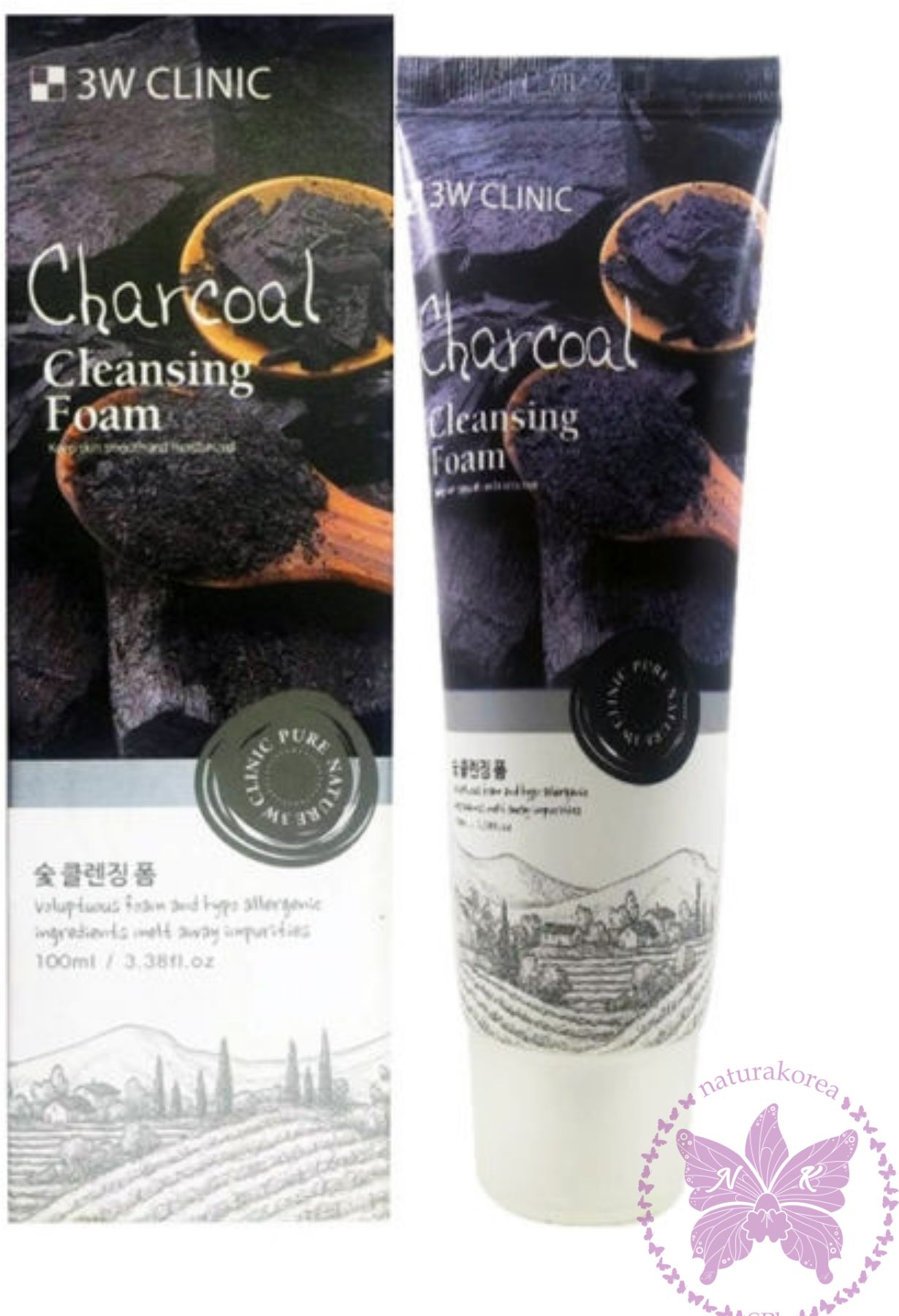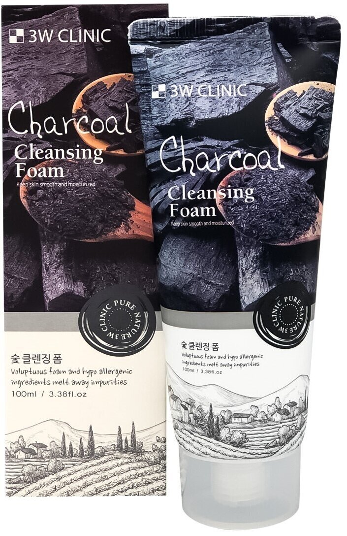 3W Clinic Charcoal Foam Cleansing — это пена для умывания с древесным углём. Она глубоко очищает кожу, освобождает поры, выводит шлаки и токсины, отшелушивает ороговевшие ткани и улучшает цвет лица. Бамбуковый уголь - имеет высокую пористость, поэтому абсорбирует большое количество грязи и вредных веществ. Он выводит токсические вещества из пор, растворяет камедоны и сальные пробки, уничтожает бактерии и грибки, устраняет излишнюю жирность и оздоравливает кожу. Комплекс жирных кислот - содержит лауриновую, миристиновую и стеариновую жирные кислоты. Они не только эффективно очищают кожу, но оказывают противовоспалительное воздействие. Жирные кислоты помогают устранить болезнетворные проявления, восстановить липидный слой эпидермиса и замедлить испарение влаги. Растительные экстракты - освежают и тонизируют кожу, подавляют активность микробов, борются с воспалениями и раздражениями. Они также стимулируют обменные процессы, улучшают микроциркуляцию и активизируют работу местного иммунитета. Уже одно применение пенки позволяет хорошо очистить кожу, освободить поры, устранить все загрязнения, вывести шлаки, сделать лицо гладким, ухоженным и сияющим. Пена смягчает и увлажняет кожу, насыщает её витаминами, минералами, природной энергией и жизненной силой. Она нормализует водный-солевой обмен, снимает отёки, подавляет активность болезнетворных бактерий, выравнивает тон лица и улучшает его цвет. Она ктивно абсорбирует излишнюю жирность, уменьшает выделение подкожного себиума, нормализует секрецию сальных желез, стягивает расширенные поры, придаёт коже матовость и ухоженный вид. Способ применения: Выдавите немного средства на руку, добавьте воды и взбейте плотную пену. Можно использовать специальную сеточку или спонж конняку. Полученную массу нанесите на лицо и смойте все загрязнения. Остатки пены удалите водой. Средство подходит для ежедневного использования. Состав: Aqua/water, glycerin, myristic acid, stearic acid, palmitic acid, potassium hydroxide, lauric acid, butylene glycol, sorbitol, glyceryl stearate se, peg-8, ascorbyl glucoside, charcoal powder, ci 77499/iron oxides, citric acid, limonene, linalool, mentha piperita extract/peppermint leaf extract, menthol, methylisothiazolinone, moringa pterygosperma seed extract, polyglycerin-10, polyglyceryl-10 myristate, polyglyceryl-10 stearate, polyquaternium-4, salicylic acid, tetrasodium edta, parfum/fragrance.