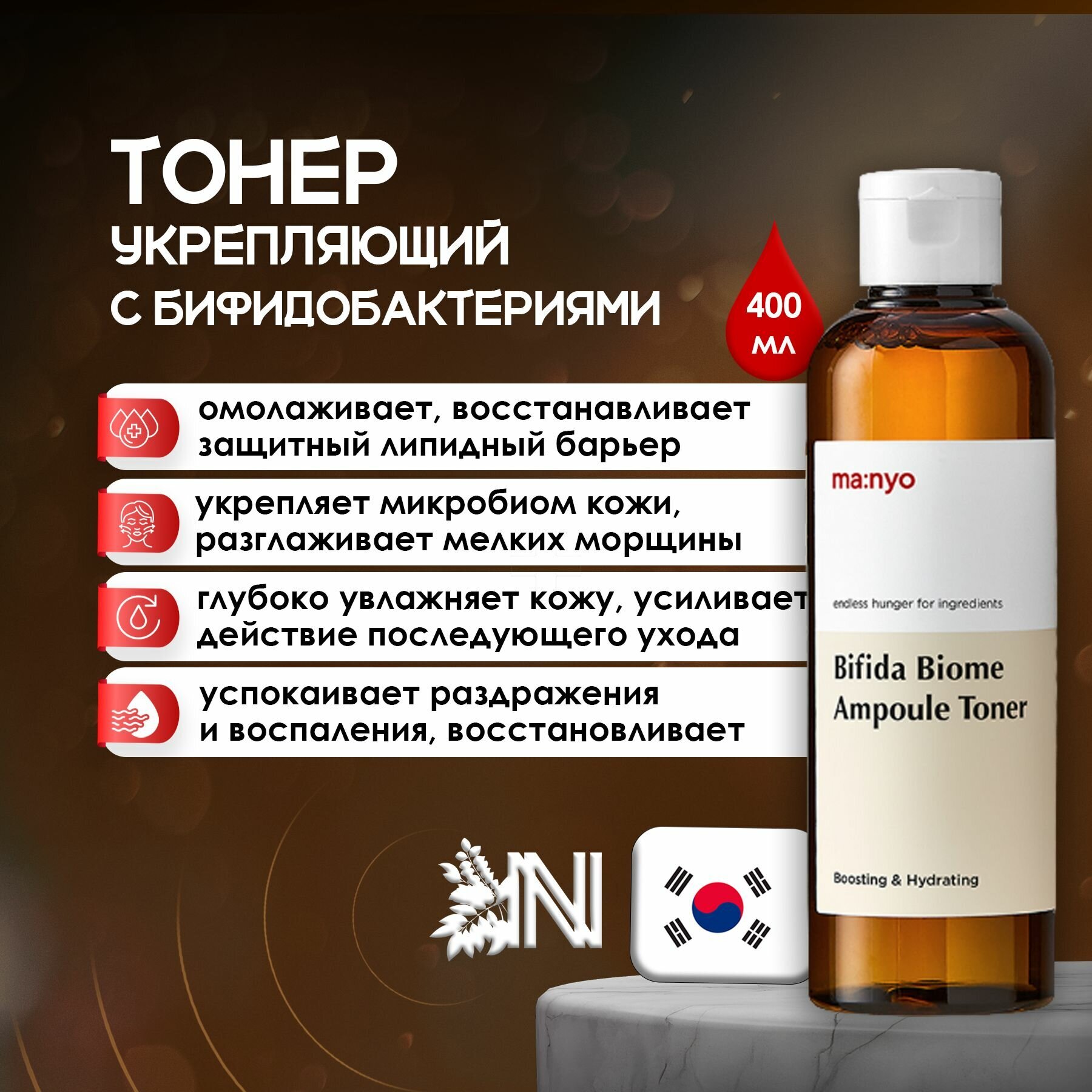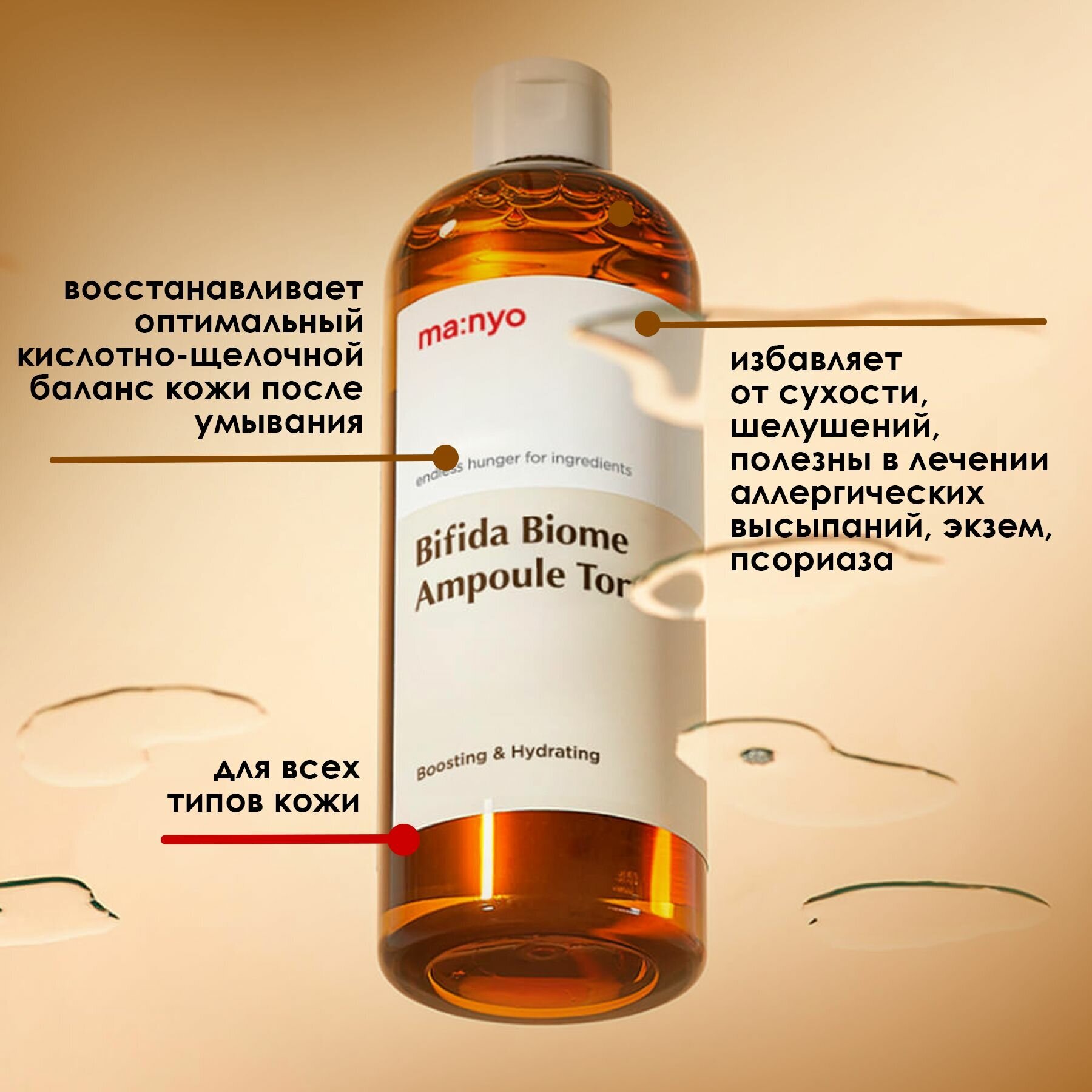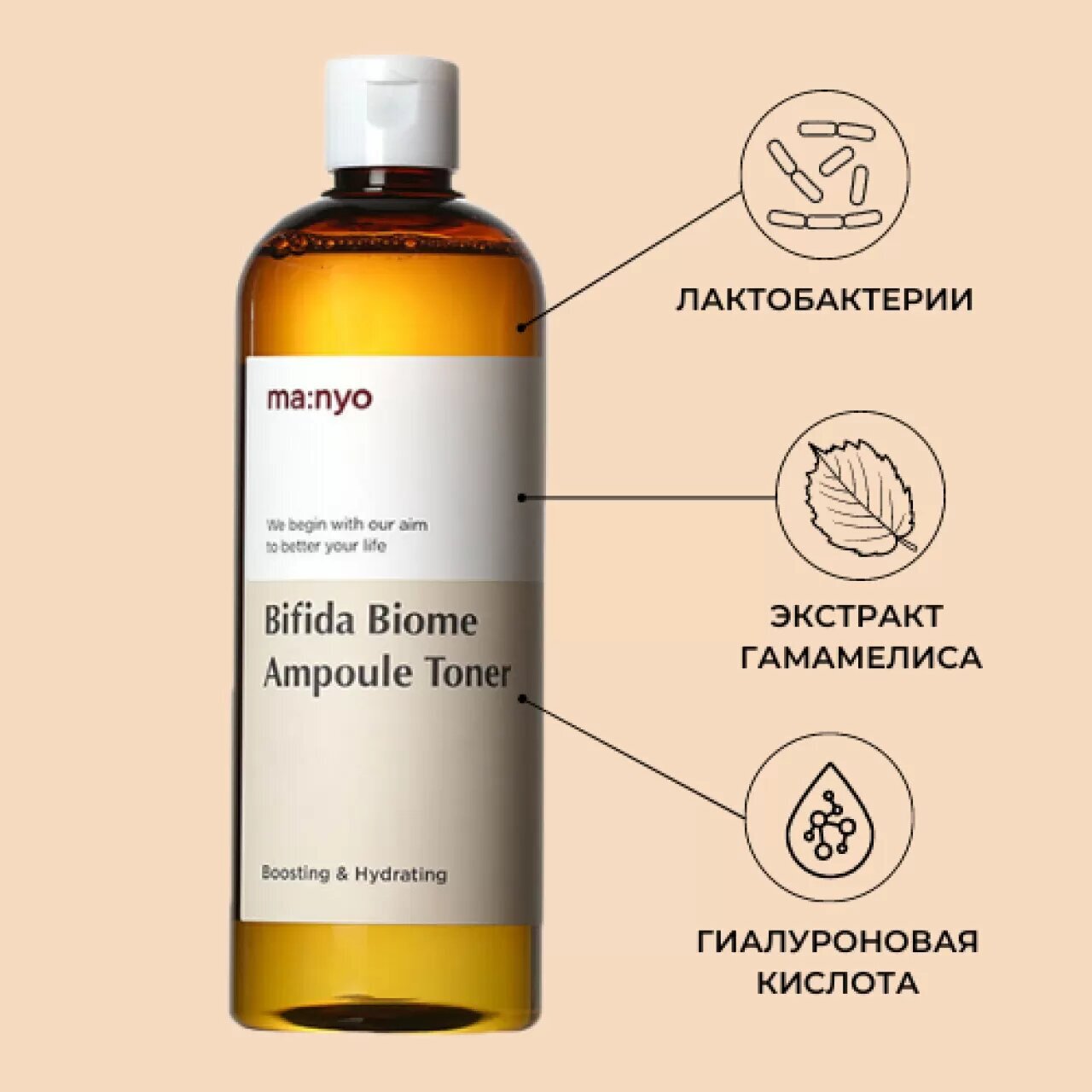 Ампульный укрепляющий тонер с бифидобактериями Manyo Bifida Biome Ampoule Toner оказывает омолаживающее действие, восстанавливает защитный липидный барьер, укрепляет микробиом кожи.