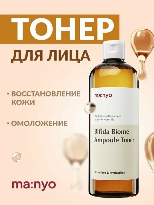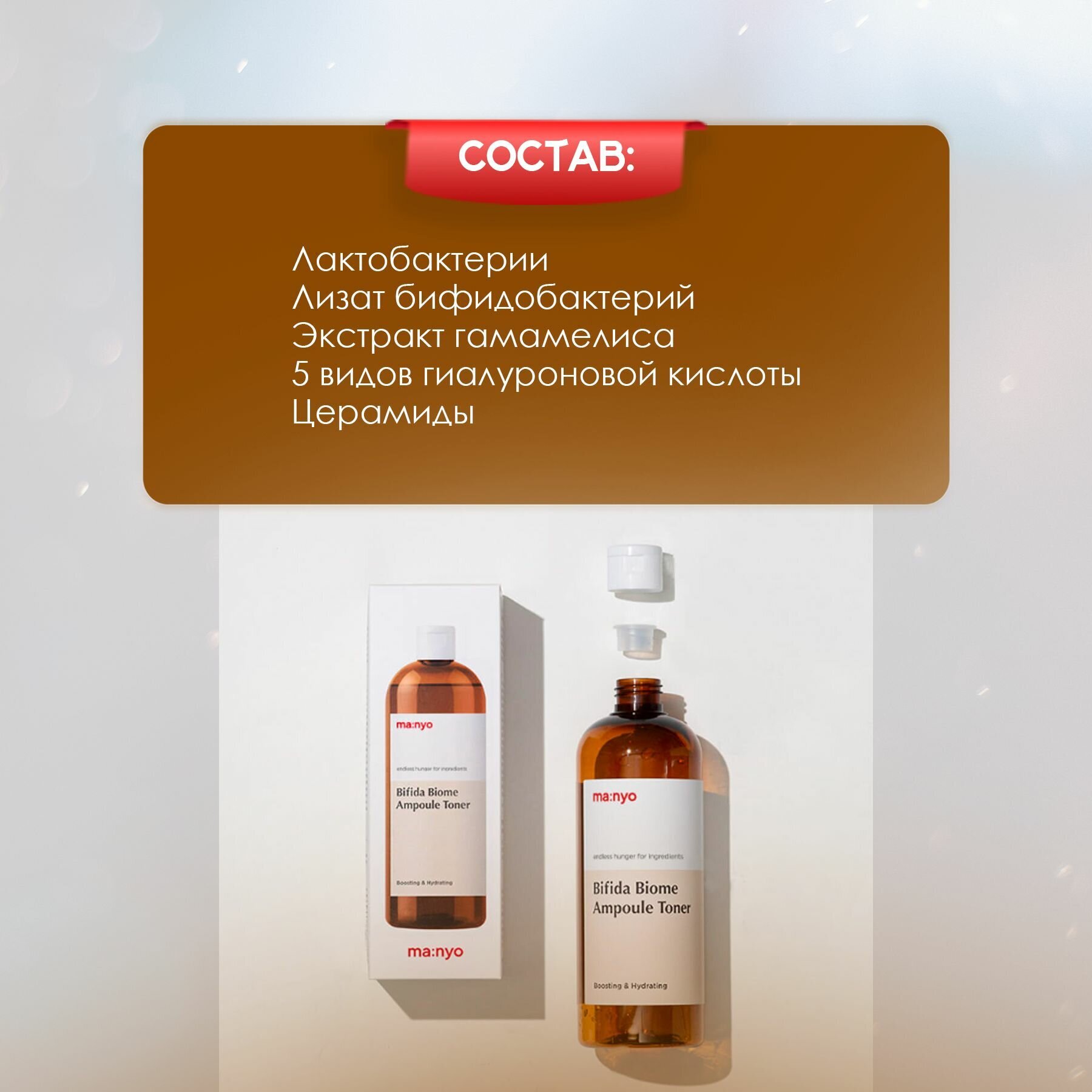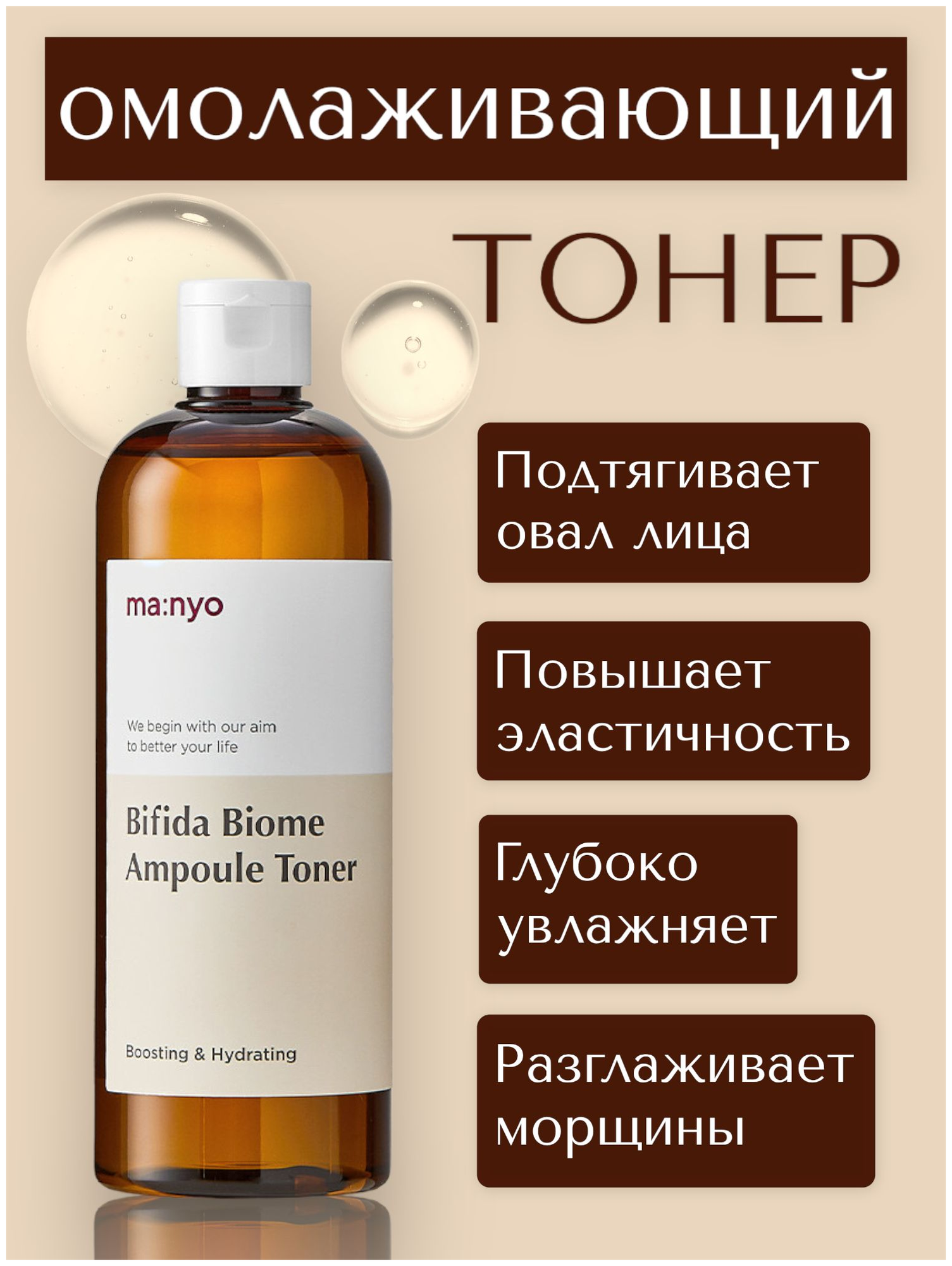 Ампульный укрепляющий тонер с бифидобактериями Manyo Bifida Biome Ampoule Toner оказывает омолаживающее действие, восстанавливает защитный липидный барьер, укрепляет микробиом кожи.