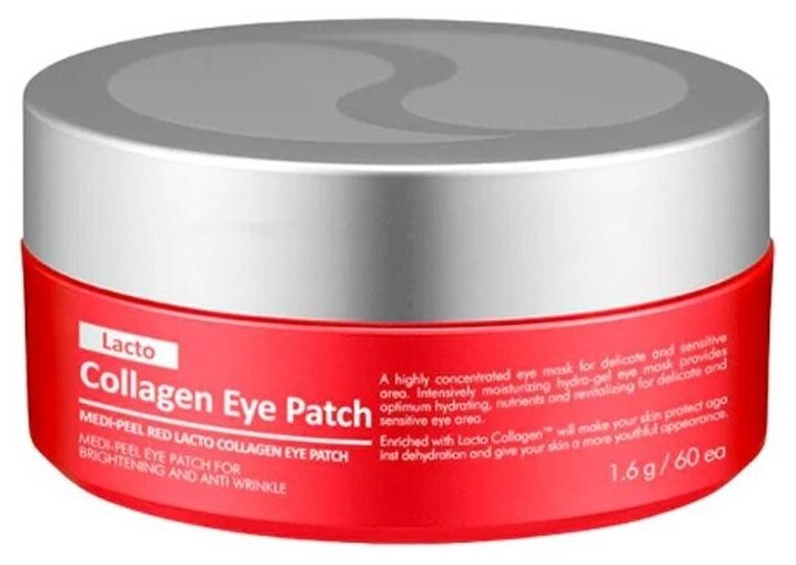 Патчи Medi-Peel Red Lacto Collagen Eye Patch разглаживают, уплотняют и подтягивают кожу вокруг глаз, замедляя первые возрастные изменения. Средство уменьшает выраженность тёмных кругов, дарит естественное сияние, отлично увлажняет. Лёгкие и упругие, патчи не утяжеляют, не оставляют липкости, отлично держатся на коже, предотвращают испарение эссенции. Повышают эластичность и упругость, устраняют мелкие морщинки, которые появляются из-за сухости. Патчи содержат экстракт коллагена (93,000 ppm) и гидролизованный коллаген (0.93 ppm ) — актив, который проникает глубоко в эпидермис за счёт низкого молекулярного размера, интенсивно увлажняет и запирает влагу, разглаживает морщинки и улучшает рельеф кожи. Фермент лактобактерий (902.1 ppm) в составе нормализует микробиоту, подавляет воспалительный процесс и борется с преждевременным старением, выравнивает тон, улучшает структуру коллагена и повышает упругость. Дополнительные действующие компоненты : Amino Acid Complex™ — комплекс, состоящий из 15 аминокислот, способствует выработке главного строительного белка кожи — коллагена, поддерживает гладкую текстуру рельефа эпидермиса и предотвращает образование морщин, восстанавливает и придаёт мягкость. 7 видов гиалуроновой кислоты имеют разную молекулярную массу, за счёт чего работают в эпидермисе и на его поверхности: связывают влагу и образуют влагоудерживающий барьер, за счёт чего устраняют сухость и чувство стянутости, поддерживают эластичность и упругость. Экстракт ирландского мха (каррагинан) обладает мощными антиоксидантными свойствами, благодаря чему защищает клетки от разрушения свободными радикалами, продлевает молодость кожи и повышает её барьерные функции. Аденозин — один из самых прогрессивных ингредиентов нового поколения. Эффективно борется с морщинами, оказывая мощное цитопротекторное действие и защищая клетки от окисления, оказывает влияние на синтез проколлагена 1, ответственного за упругость и тонус. Подходит для всех типов кожи. Способ применения: после очищения и тонизирования с помощью лопатки нанесите патчи под глаза или на другую область, которой нужно увлажнение и антивозрастной уход — например, на область носогубных складок и межбровья. Снимите через 20-30 минут, слегка похлопайте подушечками пальцев, чтобы впитать остатки эссенции.