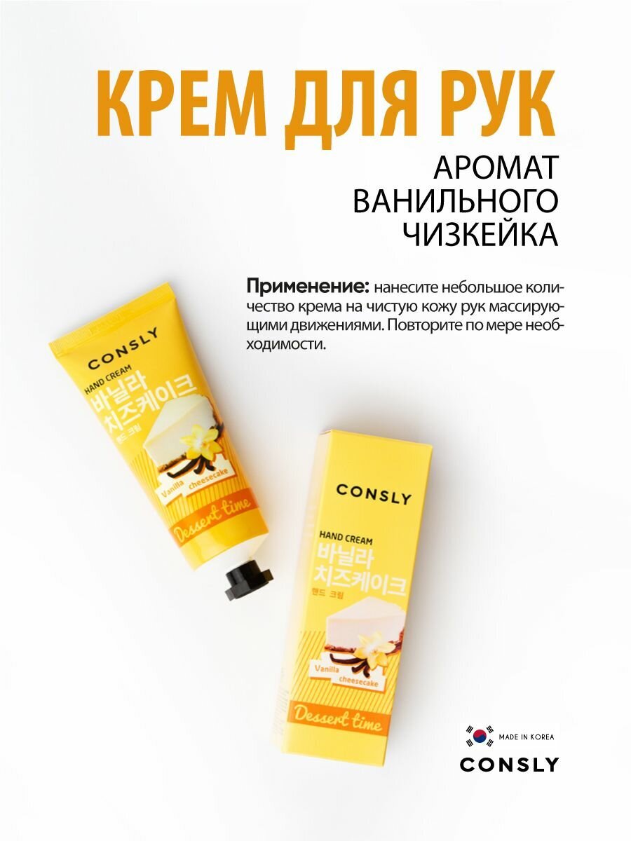 Крем для рук Consly Dessert Time с ароматом ванильного чизкейка – это высококачественный продукт, разработанный корейским брендом Consly, который зарекомендовал себя на рынке азиатской косметики.