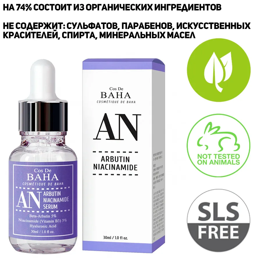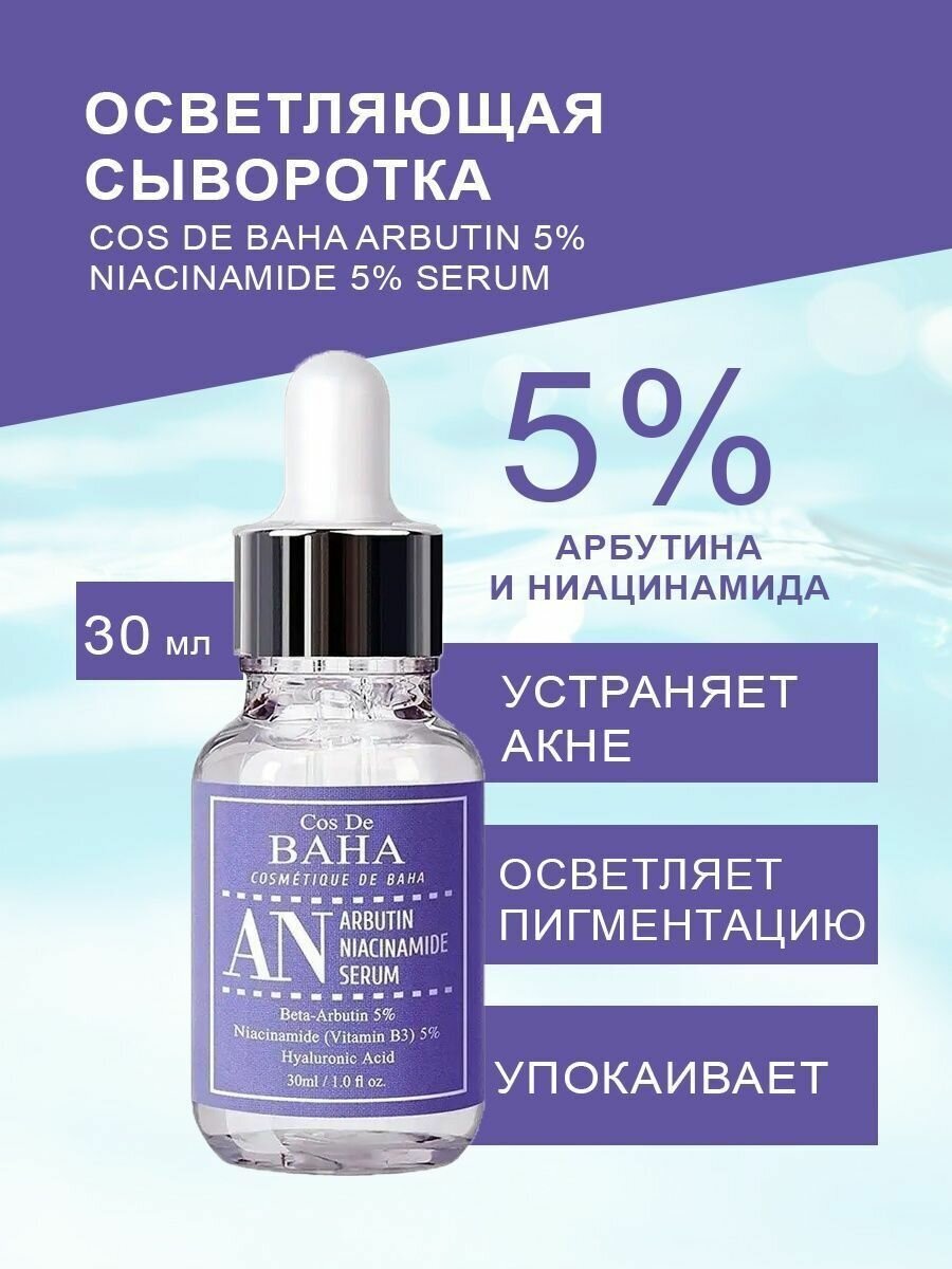 Сыворотка Cos De Baha Tranexamic Serum направлена на осветление и обновление кожи, устранение пигментных пятен и выравнивание тона.