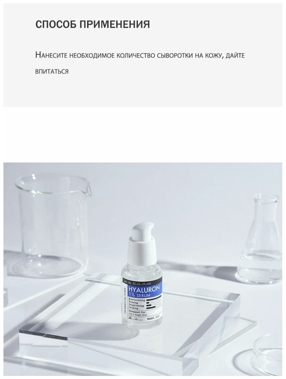 Сыворотка 1 % гиалуроновой кислоты высокой степени очистки для долговременного увлажнения состоит на 88.2% из активных ингредиентов. Гиалуроновая кислота имеет свойство сохранять влагу в 1000 раз больше, чем ее собственный объем. Прозрачная формула сыворотки с богатым увлажнением немедленно устраняет сухость, легко наносится, освежая и увлажняя, не оставляет ощущения липкости и пленки. гиалуроновая сыворотка, антивозрастная сыворотка для лица, крем для лица, крем с гиалуроновой кислотой, сыворотка от морщин, крем от морщин, увлажняющая сыворотка