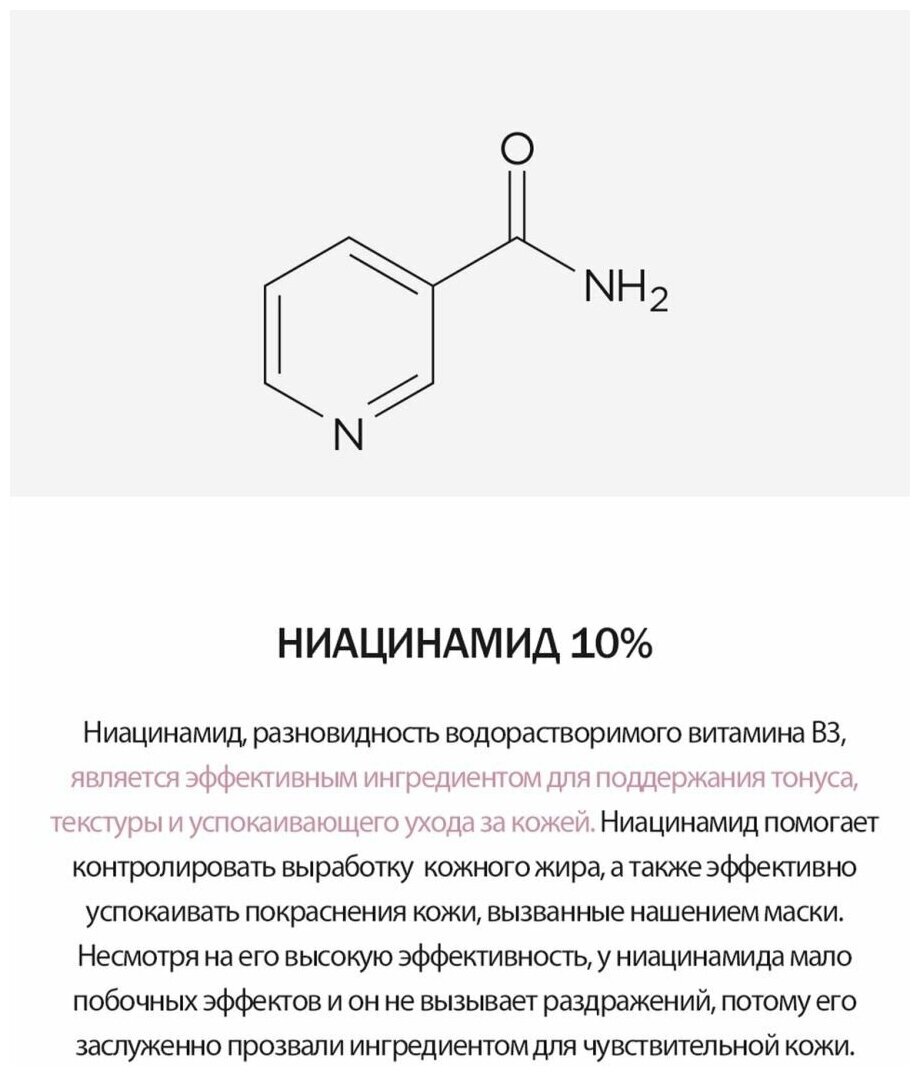 Регулирует работу сальных желез, снижая выработку себума, предотвращая появлению жирного блеска на лице. Устраняет пигментацию, акне, угревую сыпь, воспаление, успокаивает раздраженную кожу. Избавляет ее от зуда и шелушения. Ускоряет заживление микроповреждений кожи.