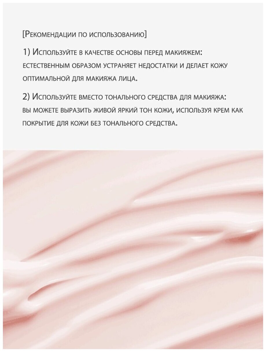 Применение крема простое и удобное. Он может использоваться в качестве основы перед макияжем, естественным образом устраняя недостатки и делая кожу оптимальной для макияжа лица. Также его можно использовать вместо тонального средства для макияжа, позволяя показать живой яркий тон кожи без использования тонального средства.