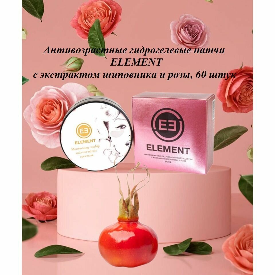 ELEMENT. Антивозрастные гидрогелевые патчи для глаз с экстрактом шиповника и розы PINK 60 шт, 85 г интенсивно увлажняют кожу и обогащают ее витаминами. Особая корейская рецептура подарит Вашей коже вокруг глаз эффект омоложения, позволит эффективно сократить морщины и уменьшить их глубину, уберет отеки и темные пигментацию. Гидрогелевые патчи имеют накопительный эффект. Экстракты шиповника и розы содержат высокие концентрации витаминов А, С, Е делая кожу упругой и гладкой, укрепляя стенки сосудов, способствуя выработке естественного коллагена. Патчи ELEMENT Pink идеально подходят для сухой зрелой кожи.