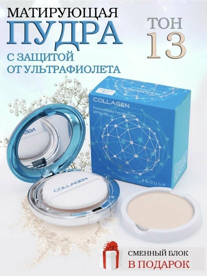 Пудра с коллагеном для лица (#13, светло-бежевый тон) предназначена для бледной, светлой и тусклой кожи. Она укрепляет эпидермис, обеспечивает гладкое и ровное покрытие. Хорошо скрывает небольшие несовершенства кожи, возвращает лицу свежесть и сияние, подстраивается под тон кожи. В составе пудры содержатся солнцезащитные фильтры SPF-50, отражающие ультрафиолетовое излучение. Она не осыпается и не оплывает в жару, хорошо матирует, не подчеркивает морщинки. При распределении не распыляется, ложится ровно, равномерно, выглядит естественно. Главное активное вещество состава - коллаген, увлажняющий кожу и предотвращающий потерю влаги. Создает защитную пленочку, «запирая» воду, не давая ей испаряться. Это повышает упругость кожи, разглаживает морщинки и складочки. Коллаген укрепляет волокна эластина, подтягивая кожу, замедляет старение.