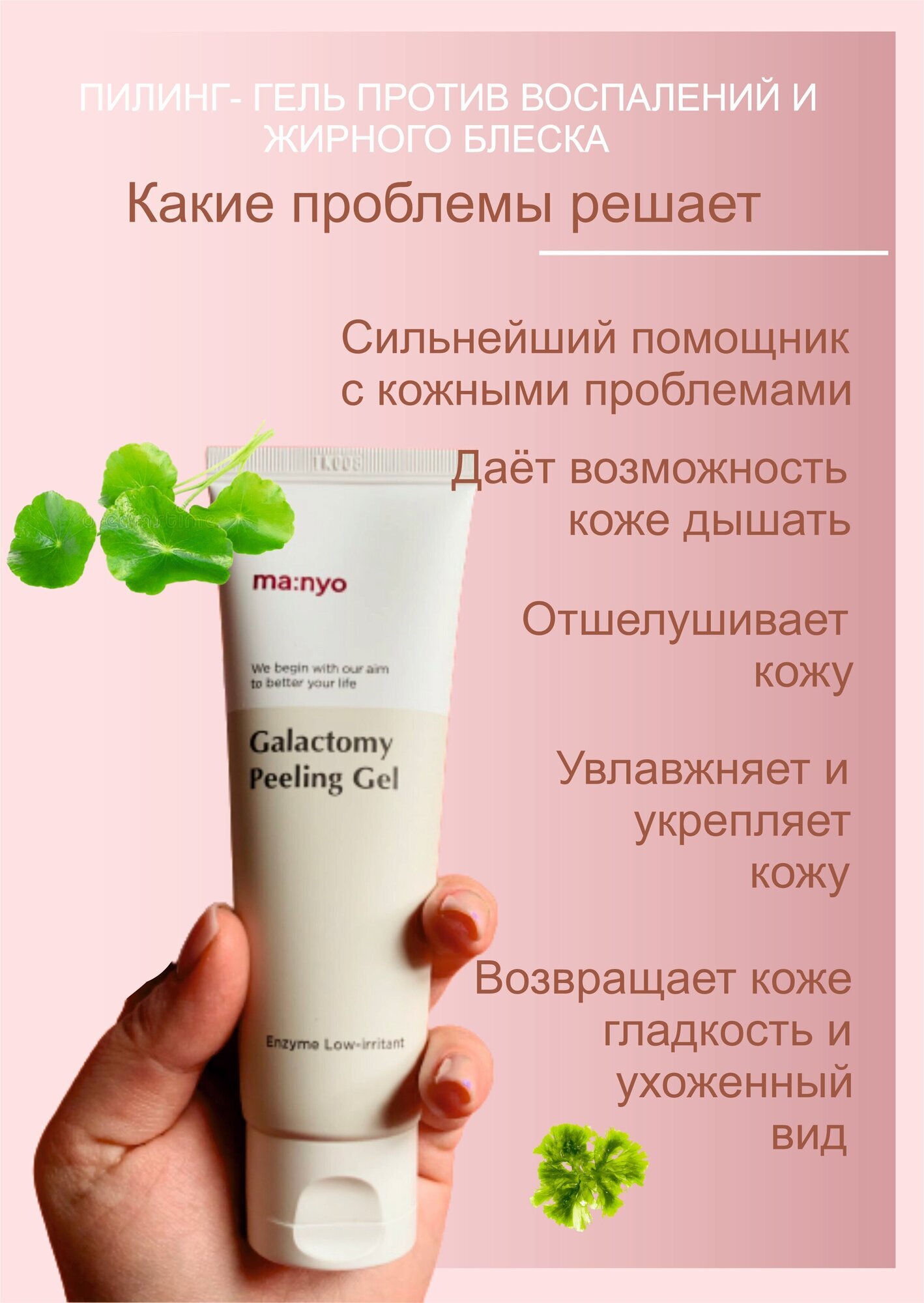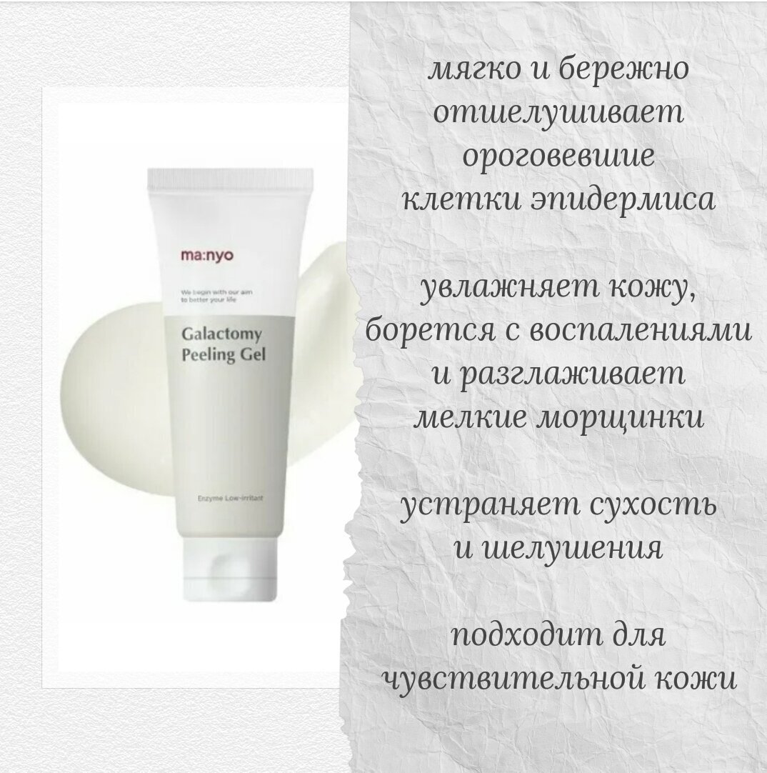 Энзимный пилинг-скатка с галактомисисом мягко, но эффективно очищает кожу от ороговевших клеток. Выравнивает тон и текстуру кожи, снимает воспаления, делает кожу гладкой и шелковистой. Богатый растительный состав помогает ухаживать за кожей любого типа, включая чувствительную, увлажняет и помогает удерживать влагу, сниимает отечность, осветляет пигментацию и предотвращает появление морщин. Средство эффективно удаляет сальные пробки и сужает поры. Благодаря экстракту галактомиссиса запускает регенеративные процессы в клетках, усиливает циркуляцию крови и восстанавливает внутриклеточный обмен веществ. Блягодаря экстракту центеллы средство обладает мощными противовоспалительными свойствами и помогает эффективно бороться с несовершенствами.