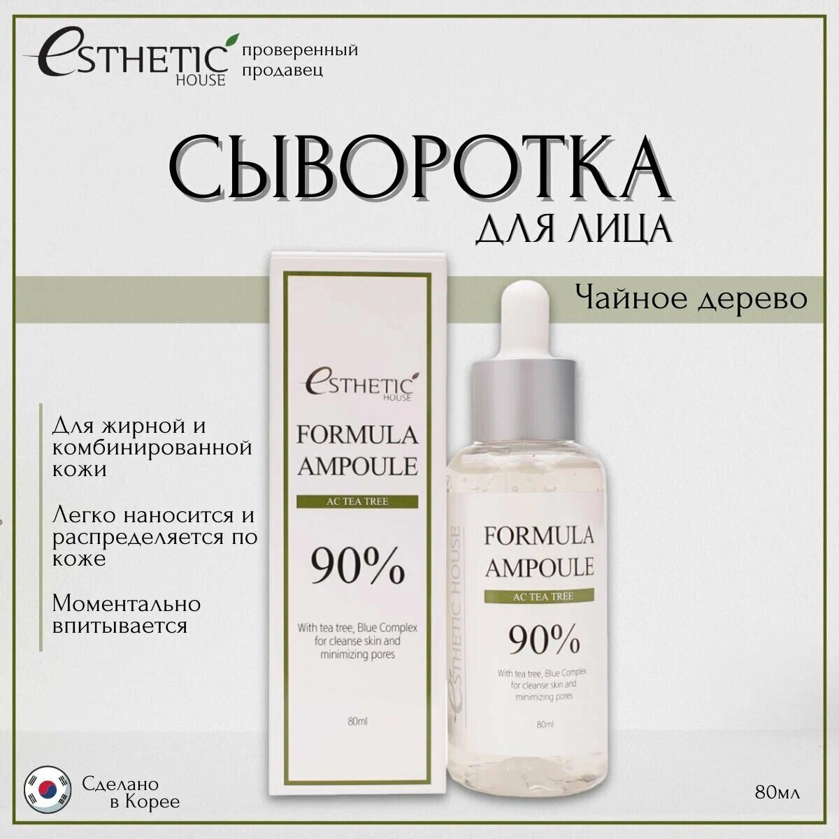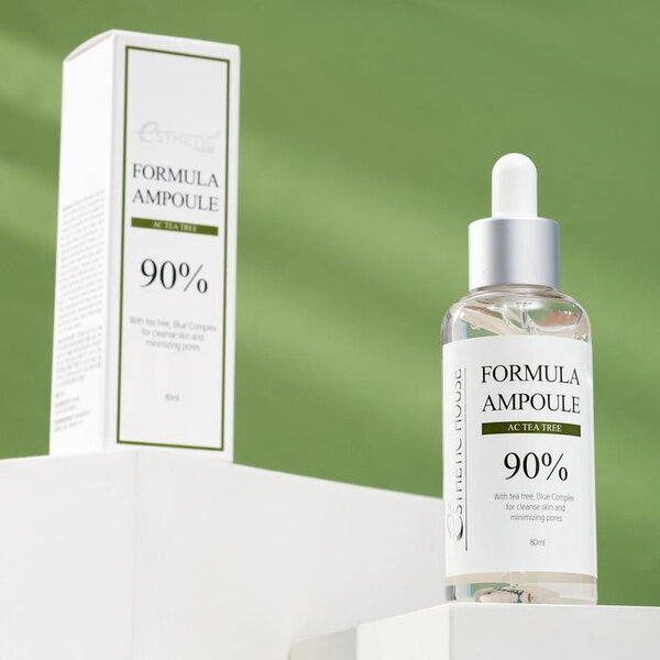 Esthetic House Formula Ampoule AC Tea Tree 90% - это ампульная сыворотка для лица с экстрактом чайного дерева, разработанная специально для проблемной кожи. Объем составляет 80 мл, что делает ее удобной для использования в домашних условиях.