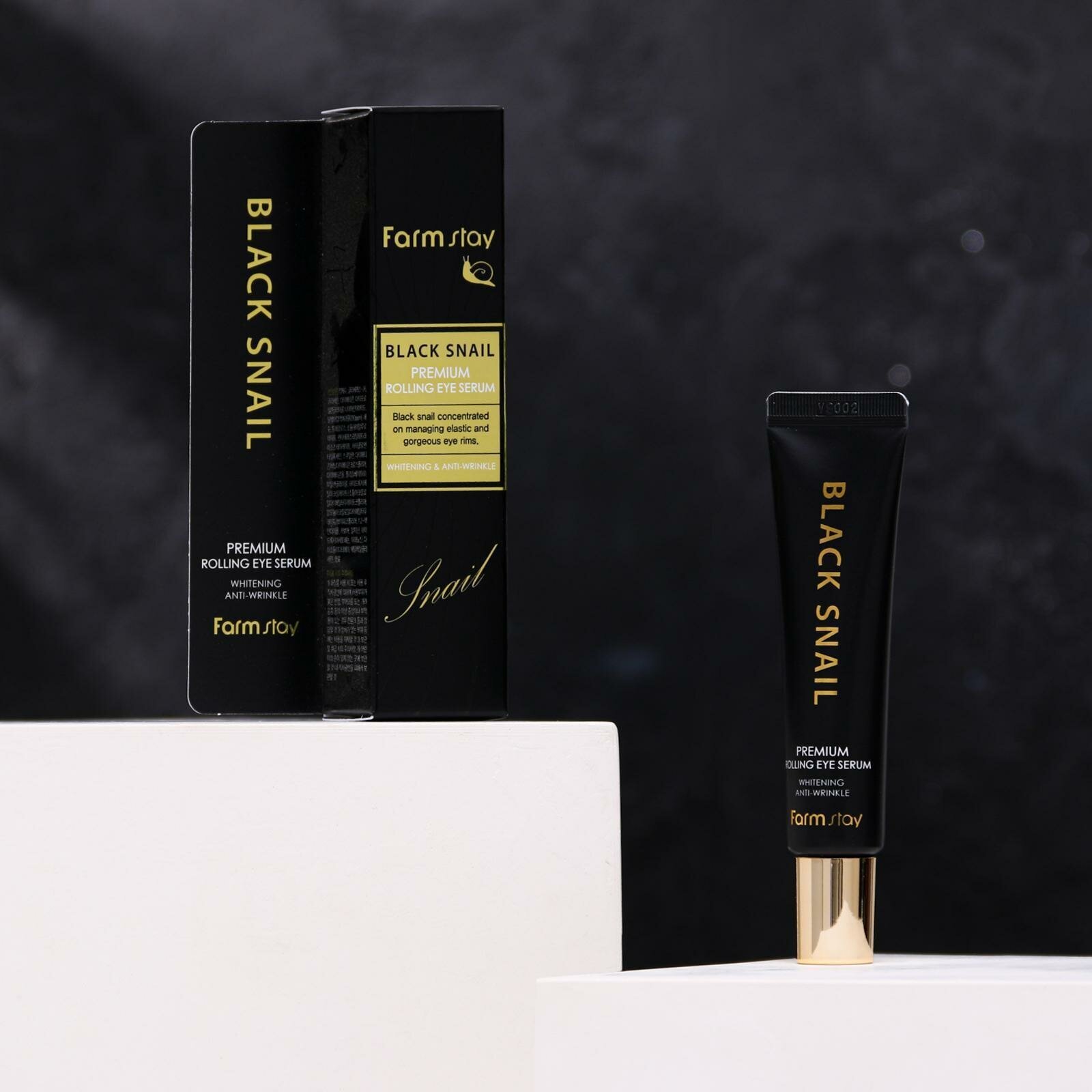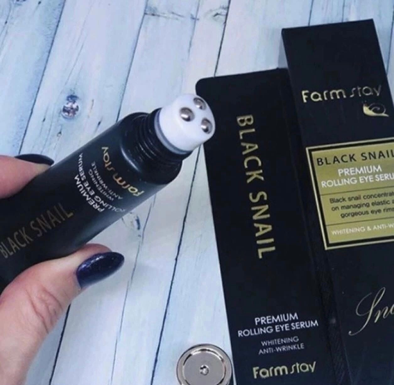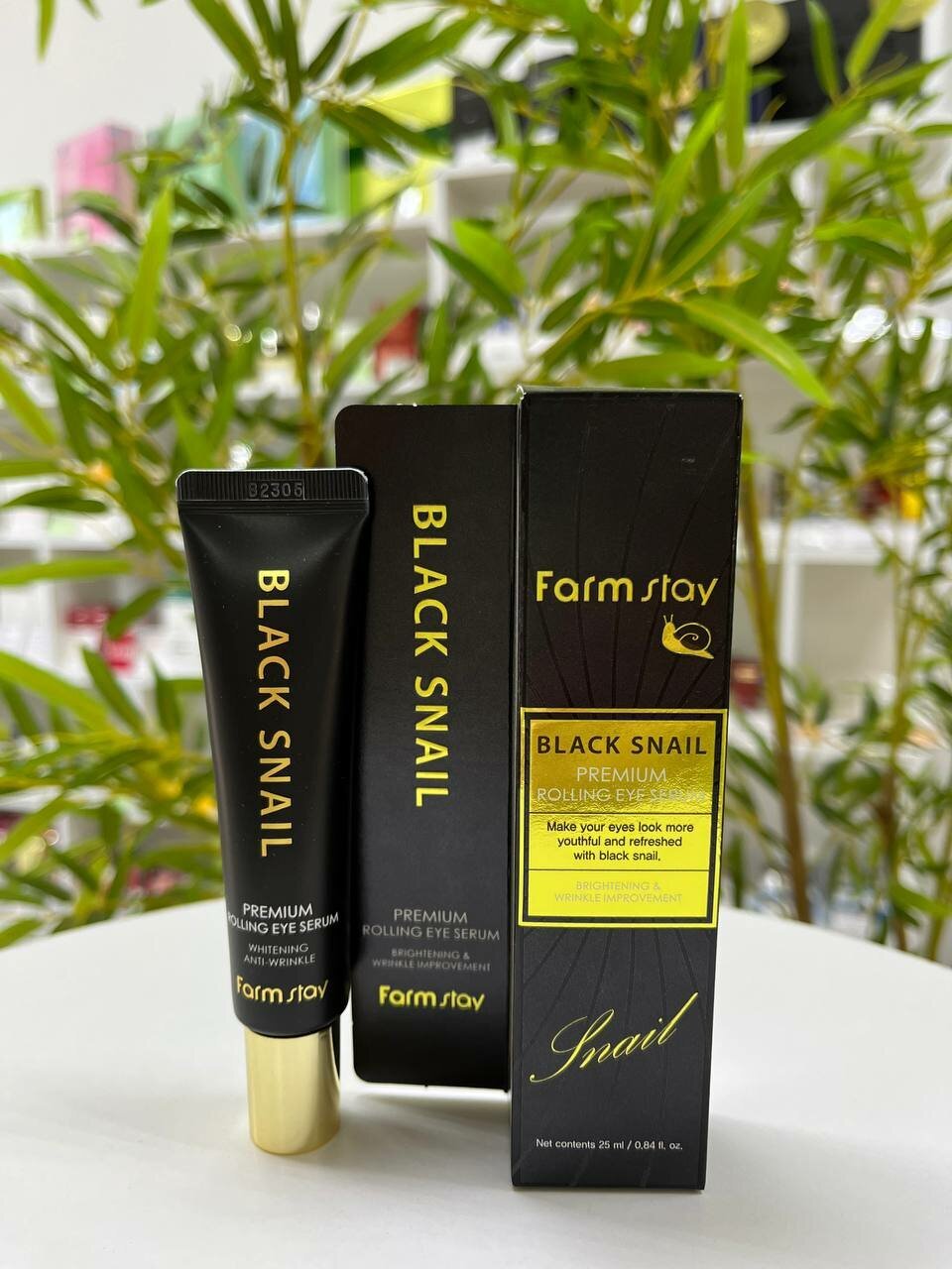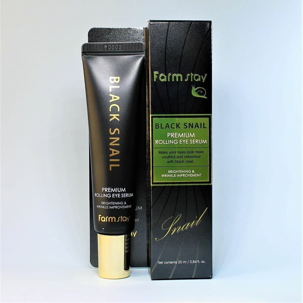 Антивозрастная сыворотка для кожи вокруг глаз FarmStay Black Snail Premium Rolling Eye Serum с муцином улитки 25 мл.