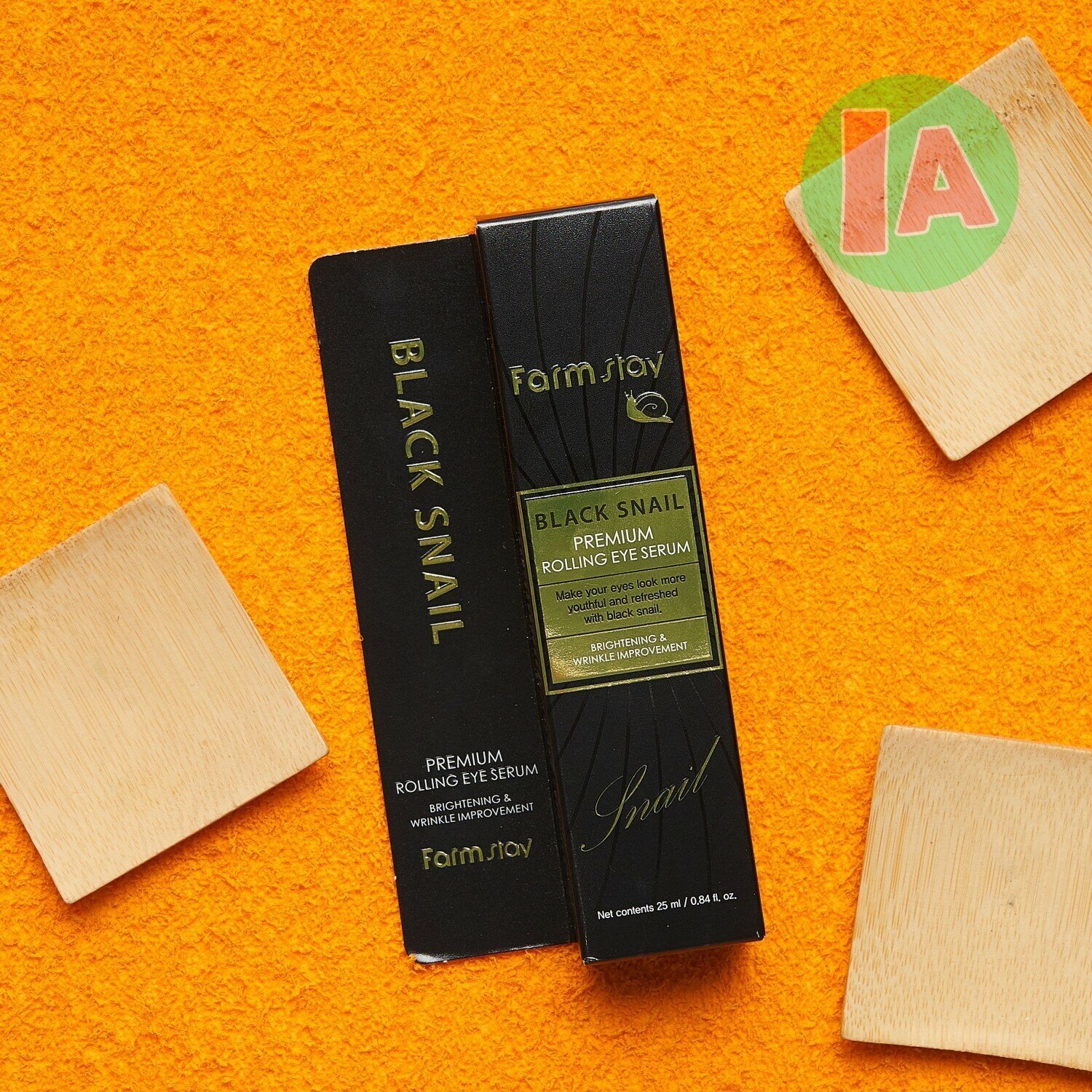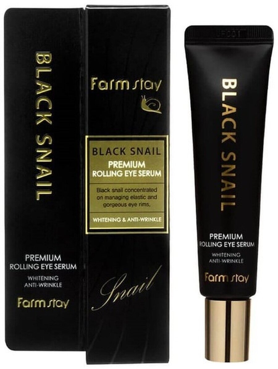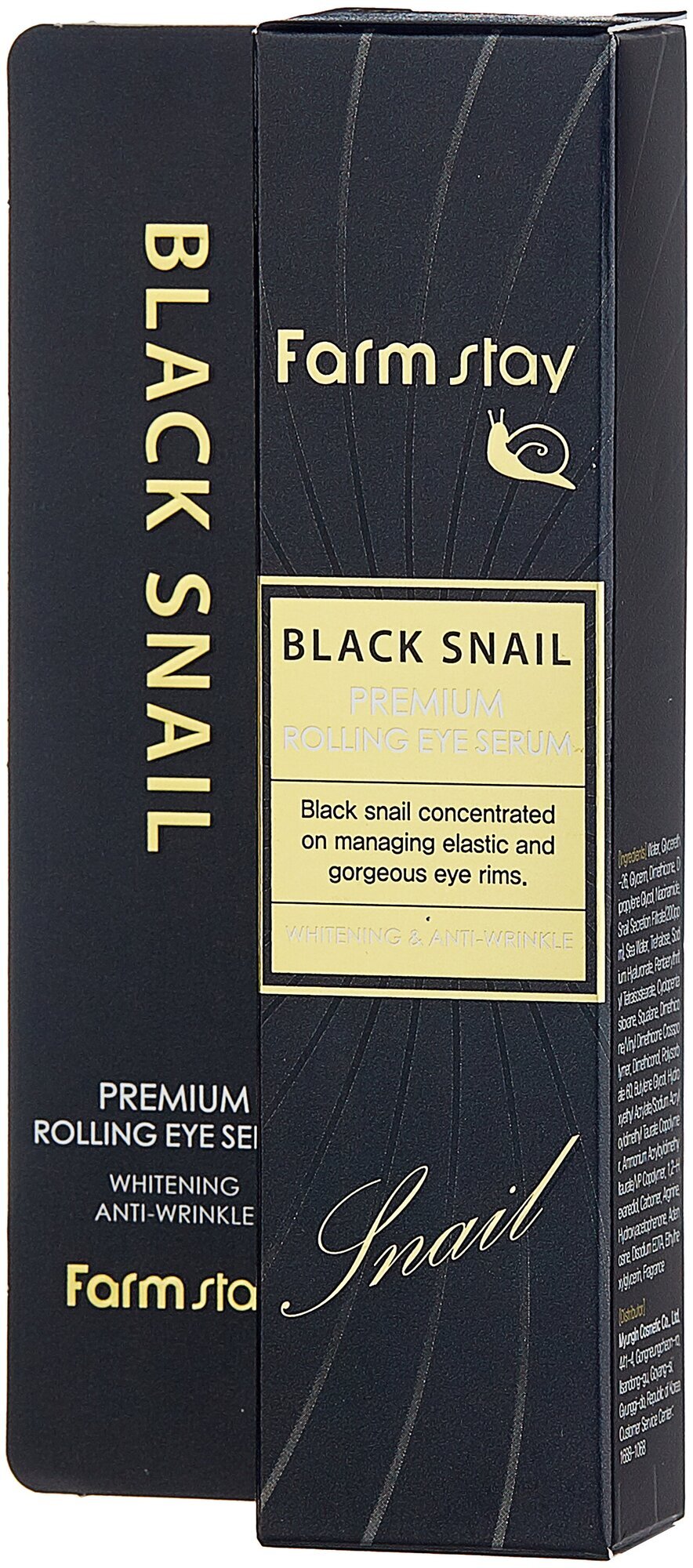 Антивозрастная сыворотка для кожи вокруг глаз FarmStay Black Snail Premium Rolling Eye Serum с муцином улитки 25 мл.