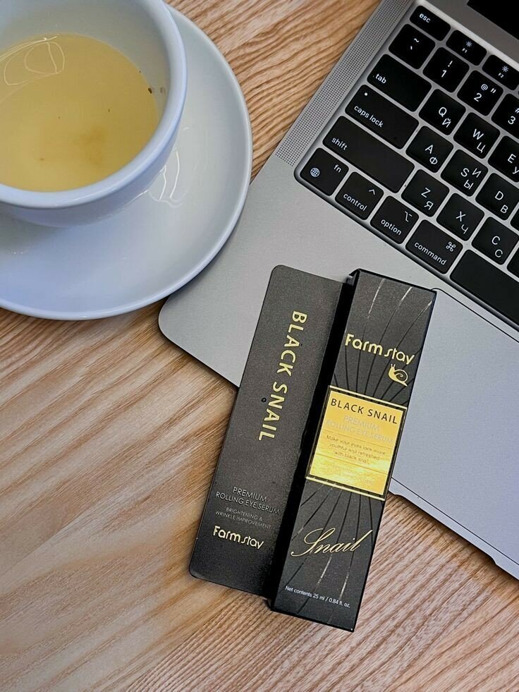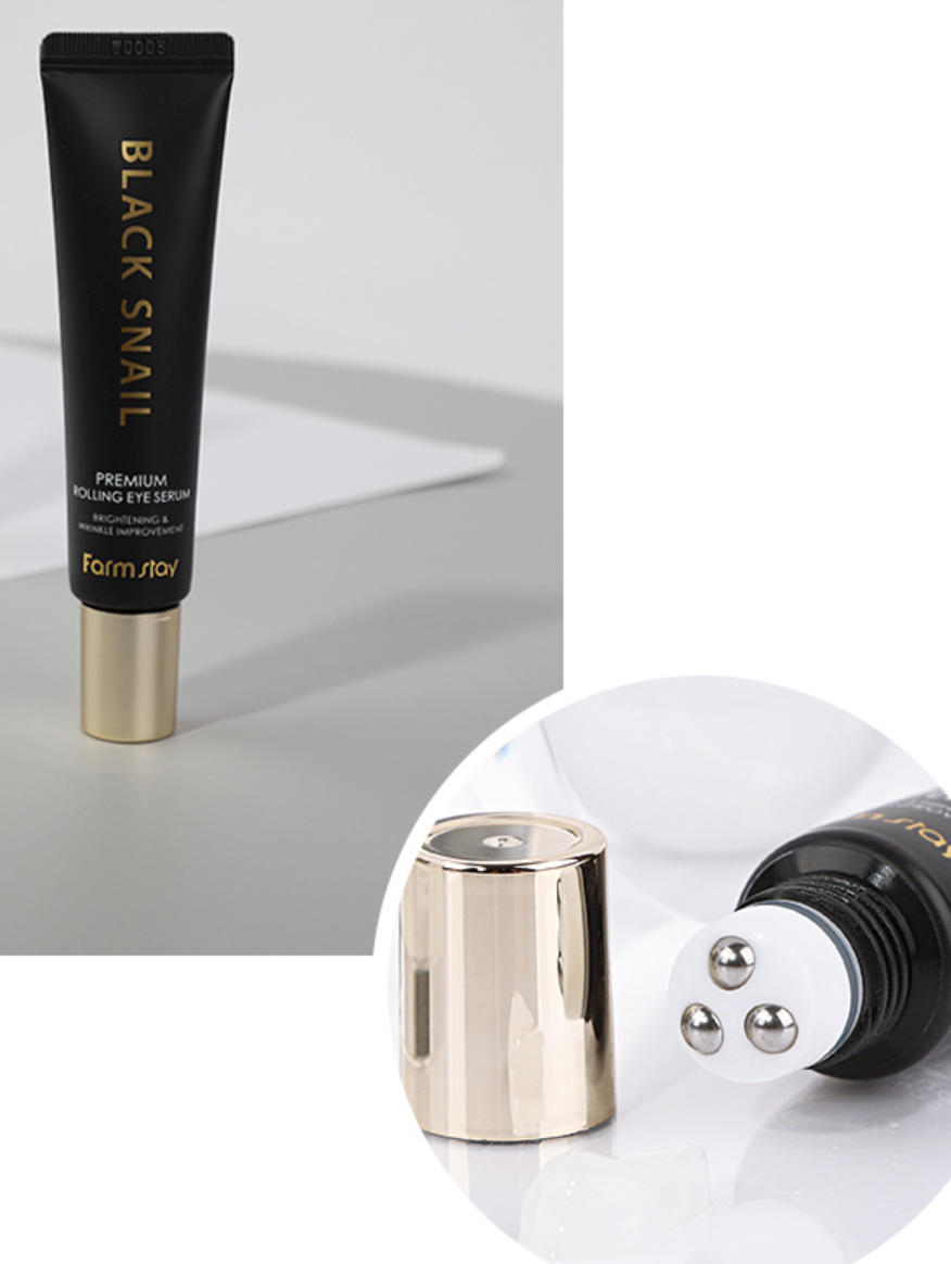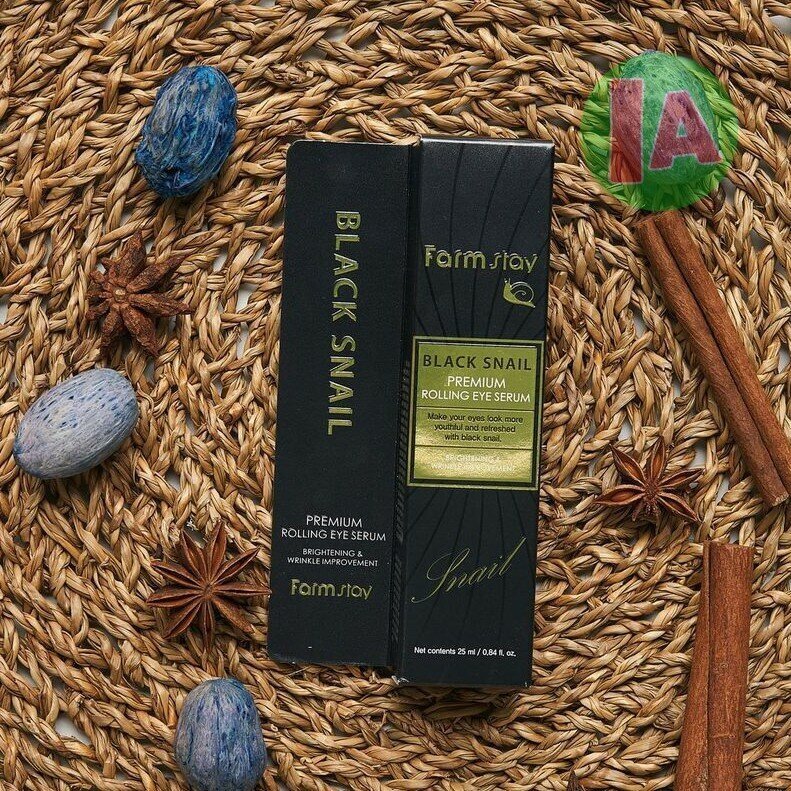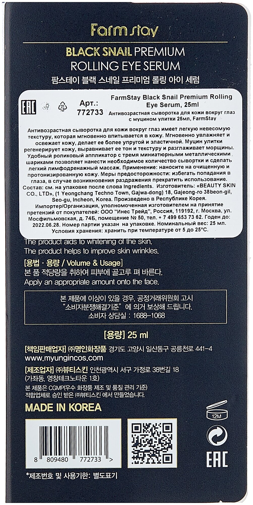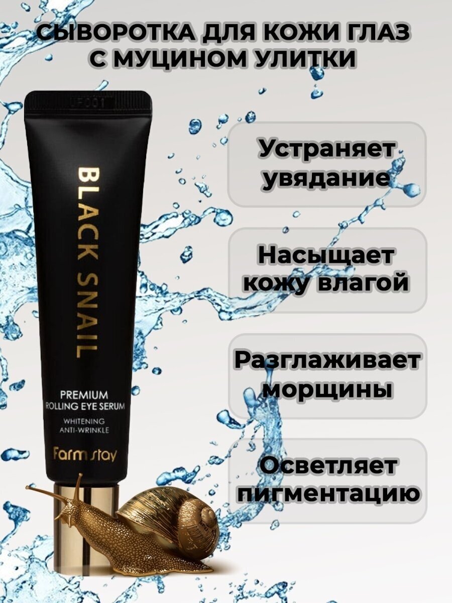 Антивозрастная сыворотка для кожи вокруг глаз FarmStay Black Snail Premium Rolling Eye Serum с муцином улитки 25 мл.
