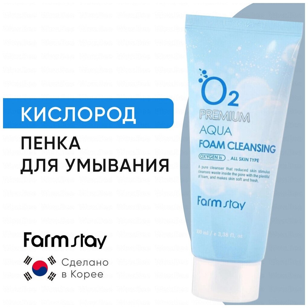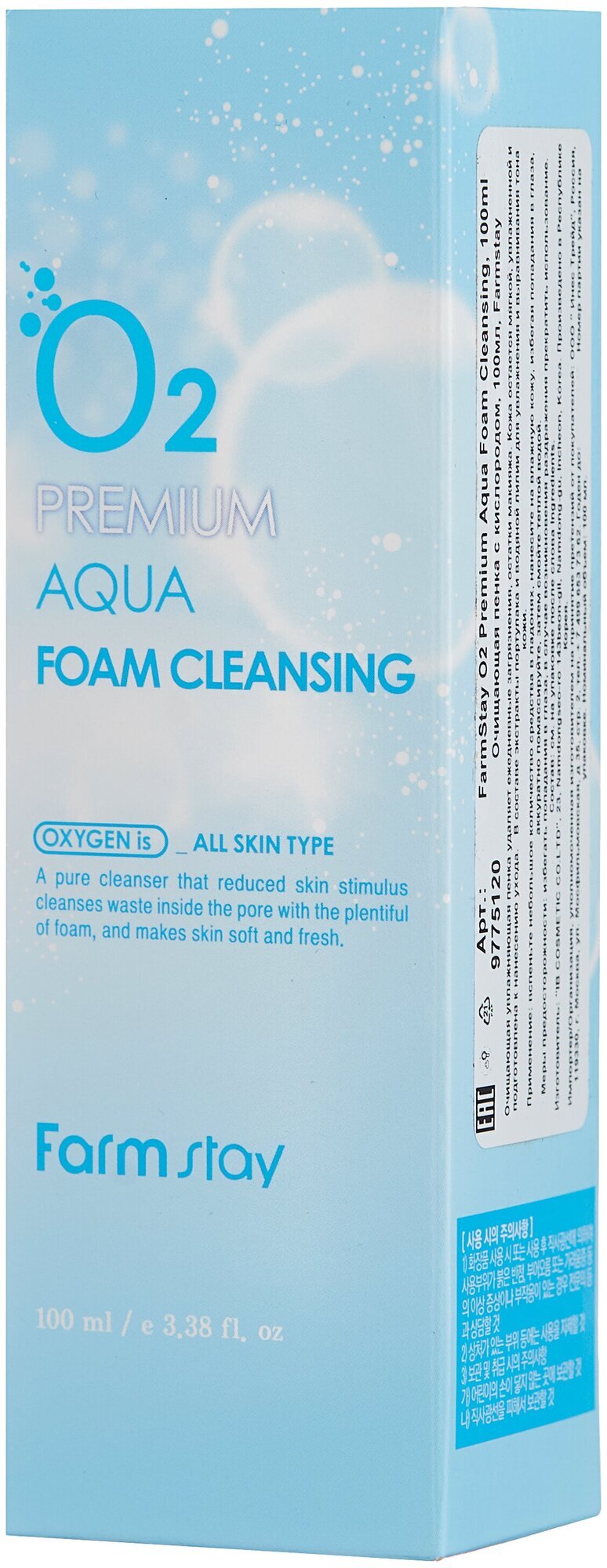Пенка для умывания FarmStay O2 Premium Aqua Foam Cleansing подходит для всех типов кожи, включая жирную, нормальную, сухую и комбинированную.