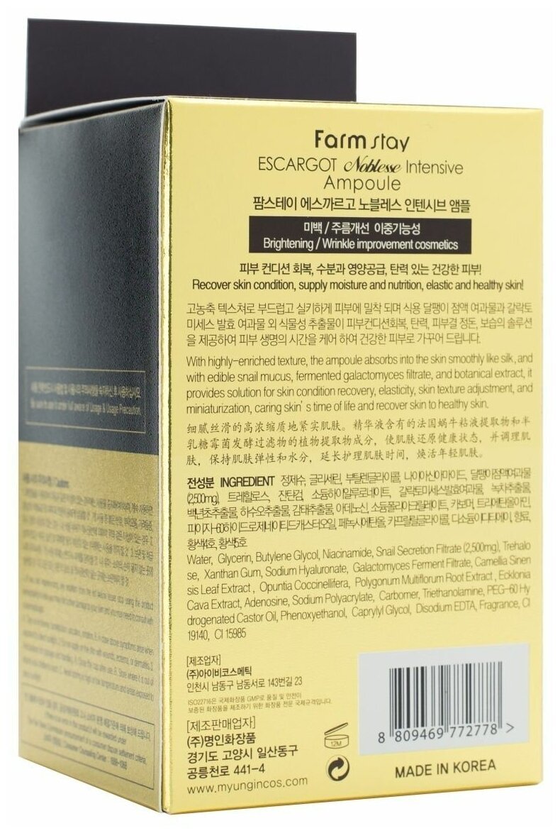 Многофункциональная ампульная сыворотка обладает целым спектром различных действий: ускоряет процессы обновления и регенерации; устраняет красноту и воспаления; способствует разглаживанию морщин и повышает упругость кожи; увлажняет и восполняет недостаток влаги в клетках эпидермиса. Средство подходит для любого типа кожи, обладает легкой гелевой консисетнцией, быстро впитывается и не оставляет липкости. Ферментированный экстракт галактомисиса мягко отшелушивает ороговевший слой кожи, ускоряет процессы заживления, выравнивает общий тон, устраняет покраснения и помогает в борьбе с пигментацией и пост-акне. Такие компоненты как муцин улитки, ниацинамид и аденозин замедляют процессы старения кожи, уменьшают глубину морщин и препятствую их появлению, укрепляют тургор и повышают эластичность кожных покровов. Основные действующие компоненты: Муцин улитки (2,500 мг) - биологически активный стимулятор, обогащенный ферментативным комплексом. Является мощным антиоксидантом, защищает клетки от разрушения и преждевременного увядания, выравнивает цвет лица и рассасывает застойные пятна. Муцин улитки омолаживает, разглаживает морщинки и подтягивает кожу, значительно улучшая ее внешний вид. Экстракт плодов опунции - разглаживает морщинки, восстанавливает кожу, борется с мимическими морщинками, мягко питает и смягчает. Экстракт зеленого чая - очень хорошо увлажняет кожу, поддерживает на оптимальном уровне уровне естественный pH-баланс кожи. Не допускает появления чрезмерного жирного блеска, при этом не сушит кожу и препятствует появлению ощущения стянутости и шелушений. Экстракт корня горца - оказывает омолаживающее действие и замедляет процессы старения. Повышает упругость и эластичность кожи, дает эффект лифтинга. Благодаря антисептическому свойству успокаивает и снимает воспаления. Ниацинамид - способствует стимуляции синтеза коллагена и улучшению защитных функций кожи, помогает снизить трансэпидермальную потерю влаги из кожи и снизить пигментацию, смягчает, повышает эластичность кожи, увлажняет, сужает поры, успокаивает, эффективен при использовании для чувствительной кожи, улучшает микроциркуляцию крови, осветляет. Аденозин - мощный омолаживающий компонент. Подтягивает кожу, усиливает выработку коллагена, способствует уменьшению количества морщинок, тормозит процессы увядания. Идеально подойдет для всех типов кожи, в том числе и для зрелой кожи. Способ применения: Нанесите необходимое количество сыворотки на очищенную, увлажненную тонером кожу.