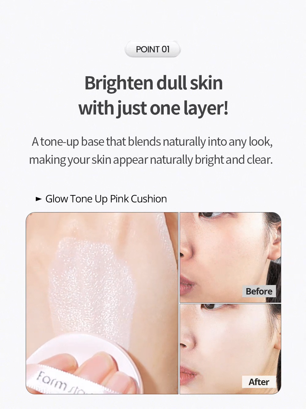 FarmStay Glow Pink Tone Up Cushion - это тональный кушон, предназначенный для выравнивания тона кожи и придания ей естественного сияния. Его легкая формула обеспечивает комфортное нанесение и длительное покрытие.