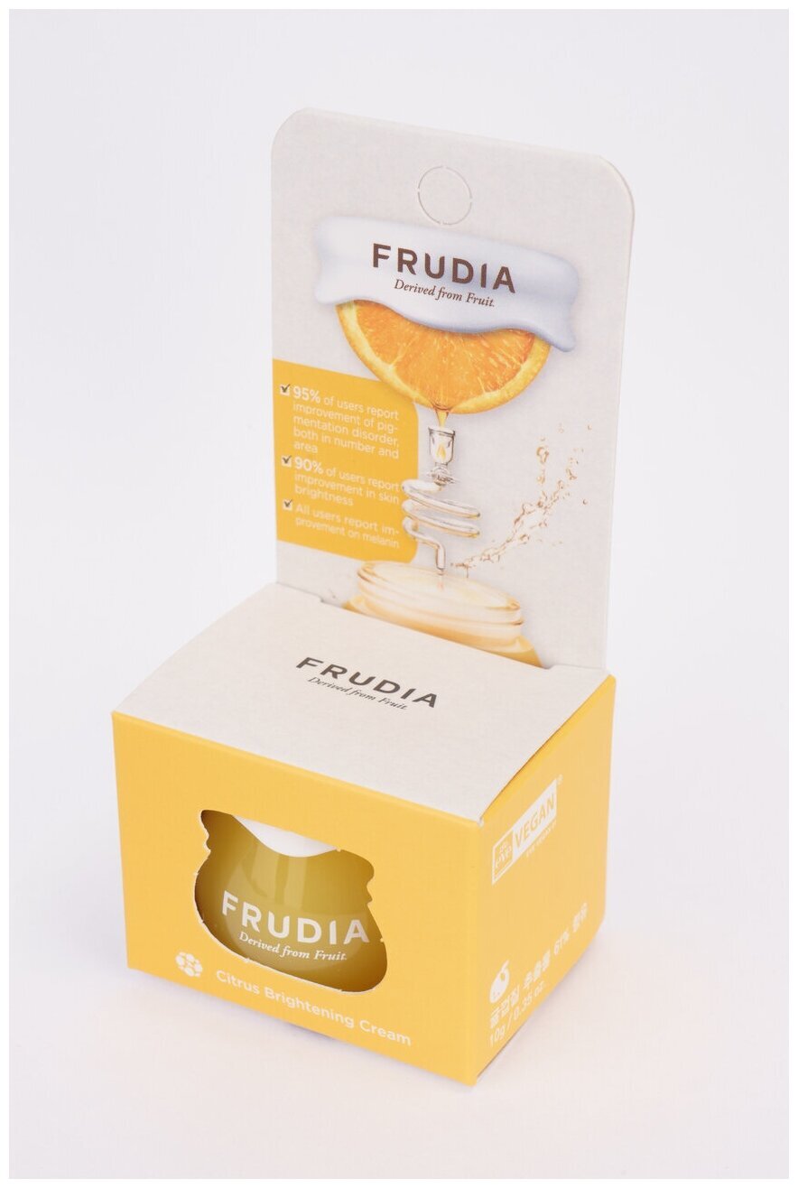 Frudia Citrus Brightening Cream - это осветляющий крем для лица, который на 61% состоит из экстрактов цитрусовых. Он интенсивно увлажняет кожу, возвращает ей свежесть и сияние, делая ее яркой и буквально подсвечивая изнутри.