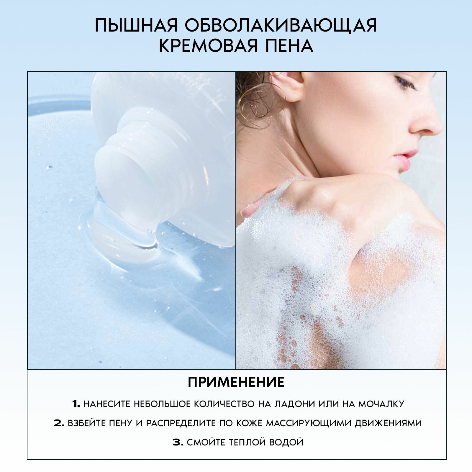 Способ применения геля прост: нанесите умеренное количество на мочалку, вспеньте, помассируйте тело, смойте теплой водой.