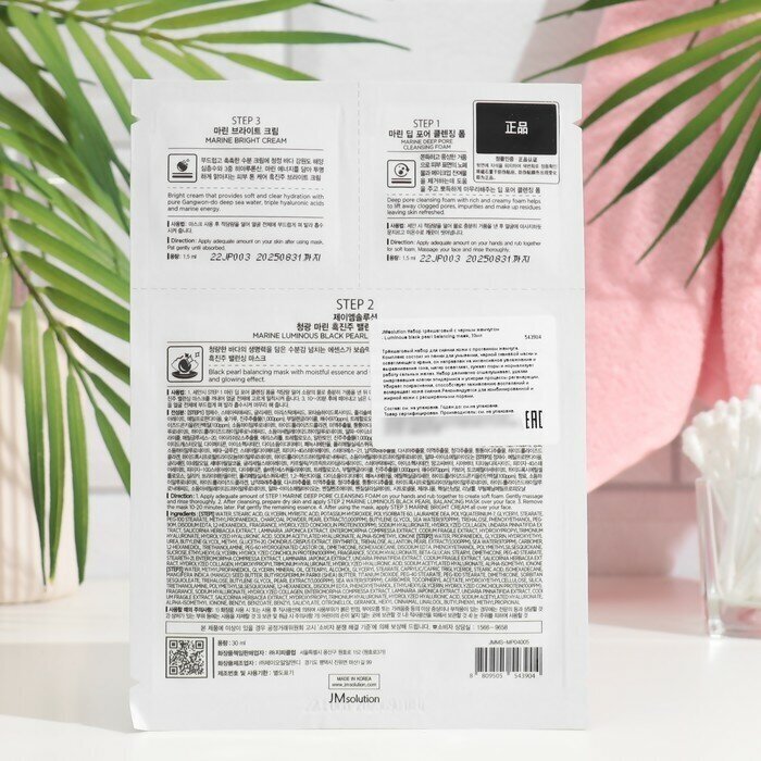 Альгинатная маска эффективно увлажняет и повышает тонус кожи, восстанавливает водный баланс, освежает и улучшает цвет лица, придает коже сияющий здоровый вид. В состав входят морские экстракты, которые оздоравливают и укрепляют иммунитет кожи, наполняя её полезными минералами и микроэлементами. Входящие в состав три вида гиалуроновой кислоты притягивают и накапливают влагу на поверхности кожи, создают лёгкую защитную плёнку, предотвращают испарение воды и обезвоживание. Маска предотвращает испарение питательных веществ в воздух, способствует их более глубокому проникновению непосредственно в кожу Способ применения: очистите кожу и нанесите тонер. Смешайте базовый гель из шага 1 и бустер-порошок из шага 2, перемешивая шпателем в одном направлении до получения однородной массы. Нанесите получившуюся маску на кожу лица с помощью шпателя. По желанию нанесите маску на шею и область декольте. Через 15-20 минут, когда маска застынет, аккуратно снимите ее. Остатки маски снять с помощью влажной салфетки. Завершить процедуру увлажняющим кремом. Состав: Water, Dipropylene Glycol, Methylpropanediol, PEG-75, Algin, Glycerin, PEG/PPG-17/6 Copolymer, Potassium Chloride, Mica (CI 77019), Phenoxyethanol, Xanthan Gum, Ethylhexylglycerin, Titanium Dioxide (CI 77891), Gellan Gum, Carbon Black(CI 77266), Allantoin, Pearl Extract (100PPM), Hydrolyzed Conchiolin Protein (100PPM), 1,2-Hexanediol, Undaria Pinnatifida Extract, Codium Fragile Extract, Enteromorpha Compressa Extract, Laminaria Japonica Extract, Salicornia Herbacea Extract, Sea Water, Hydrolyzed Collagen, Butylene Glycol, Sodium Hyaluronate, Hydrolyzed Hyaluronic Acid, Sodium Acetylated Hyaluronate, Disodium EDTA, Fragrance Glucose, Calcium Sulfate, Zea Mays (Corn) Starch, Tetrasodium Pyrophosphate, Sodium Hyaluronate (0.1PPM), Hydrolyzed Hyaluronic Acid (0.1PPM), Sodium Acetylated Hyaluronate (0.1PPM).