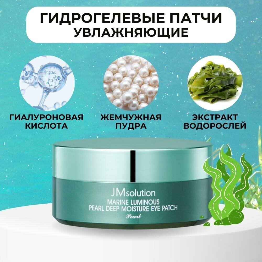 Гидрогелевые патчи JMsolution MARINE LUMINOUS PEARL DEEP MOISTURE EYE PATCH с протеинами жемчуга и морской водой. Патчи интенсивно увлажняют кожу, разглаживают морщинки и кожные заломы, предотвращают преждевременное проявление возрастных изменений кожи. Локальные маски также дают приятный охлаждающий эффект, снимают отёчность и устраняют припухлости, осветляют темные круги под глазами. При соприкосновении с кожей, гидрогель слегка тает, тем самым обеспечивая интенсивное проникновение эссенции в глубокие слои дермы.