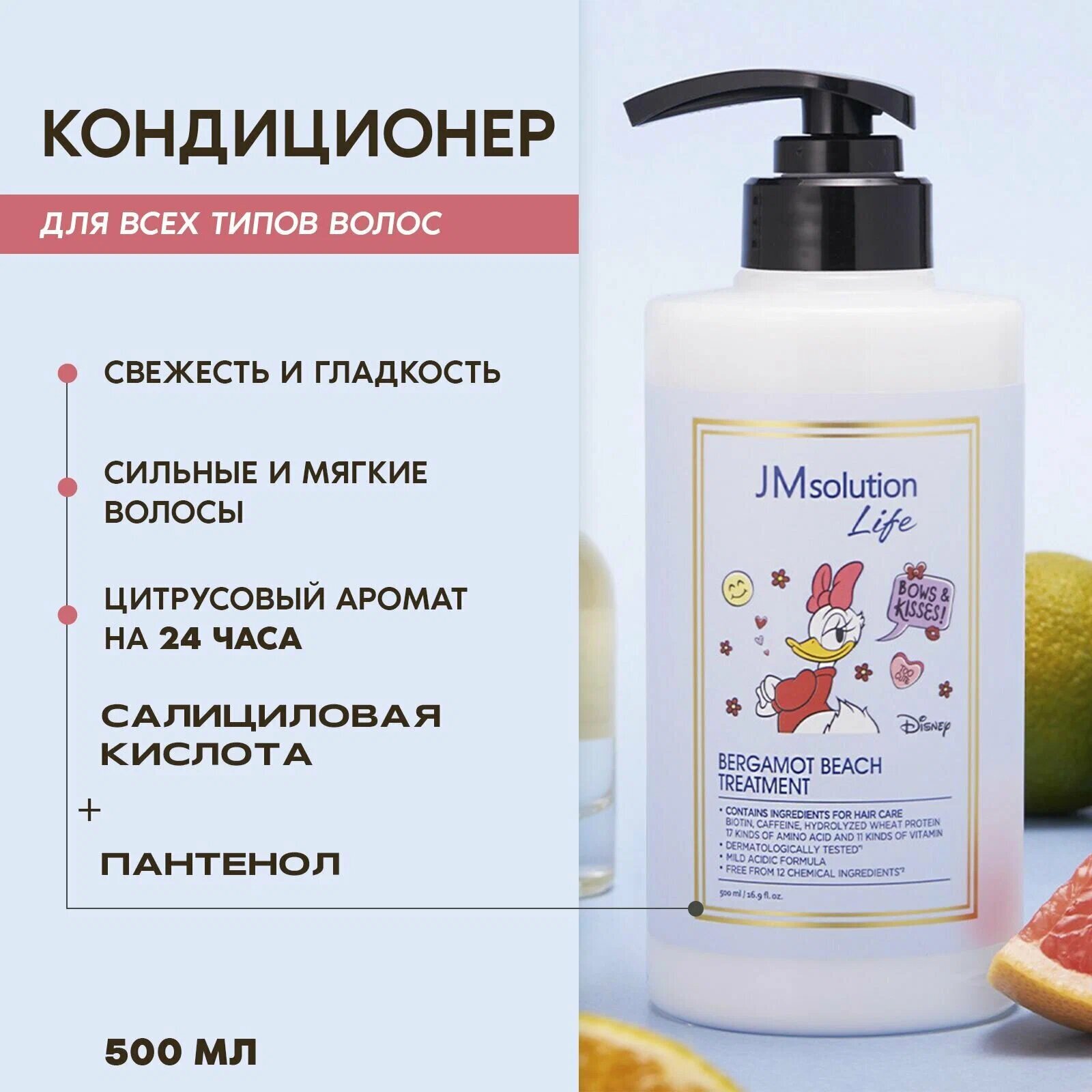 Маска-бальзам для волос JMsolution Life Disney Bergamot Beach Treatment с экстрактом бергамота - это эффективное средство для ухода за волосами всех типов. В составе маски присутствуют активные ингредиенты, такие как пантенол, которые увлажняют и укрепляют волосы, предотвращая их выпадение. Экстракты бергамота, лимона, лаванды, жасмина, розы придают волосам здоровый блеск и силу.