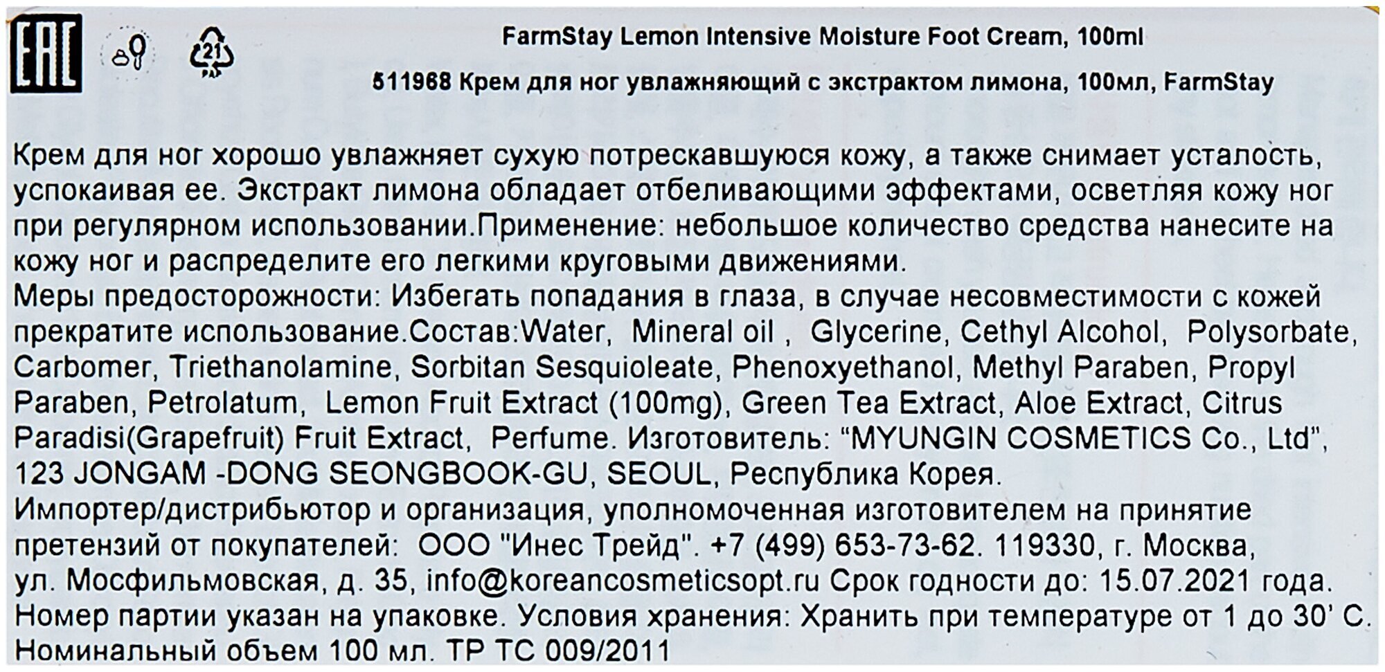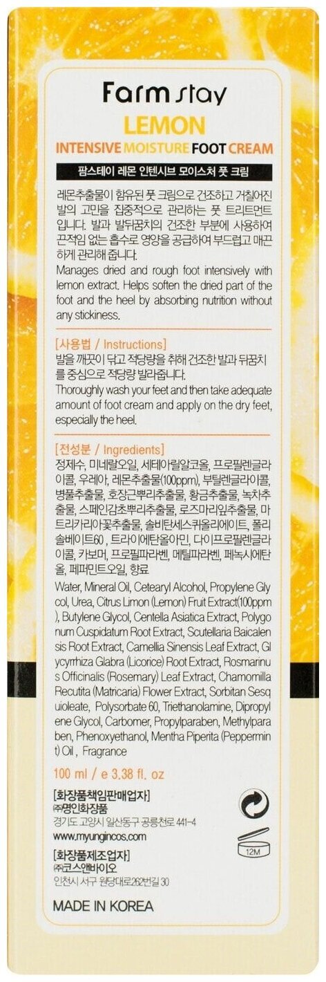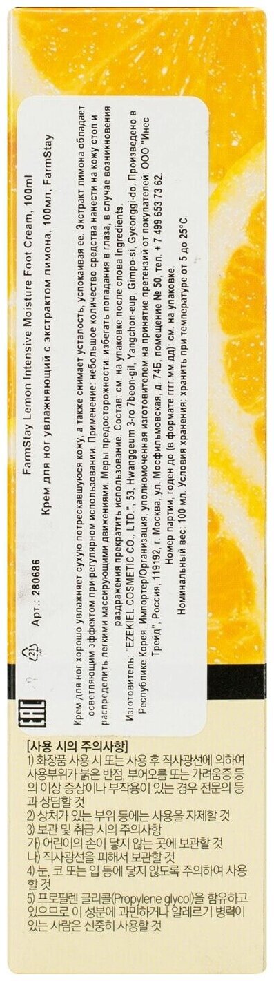 Интенсивный увлажняющий крем с лимоном FarmStay Lemon Intensive Moisture Foot Cream подарит вашим усталым ножкам второе дыхание.