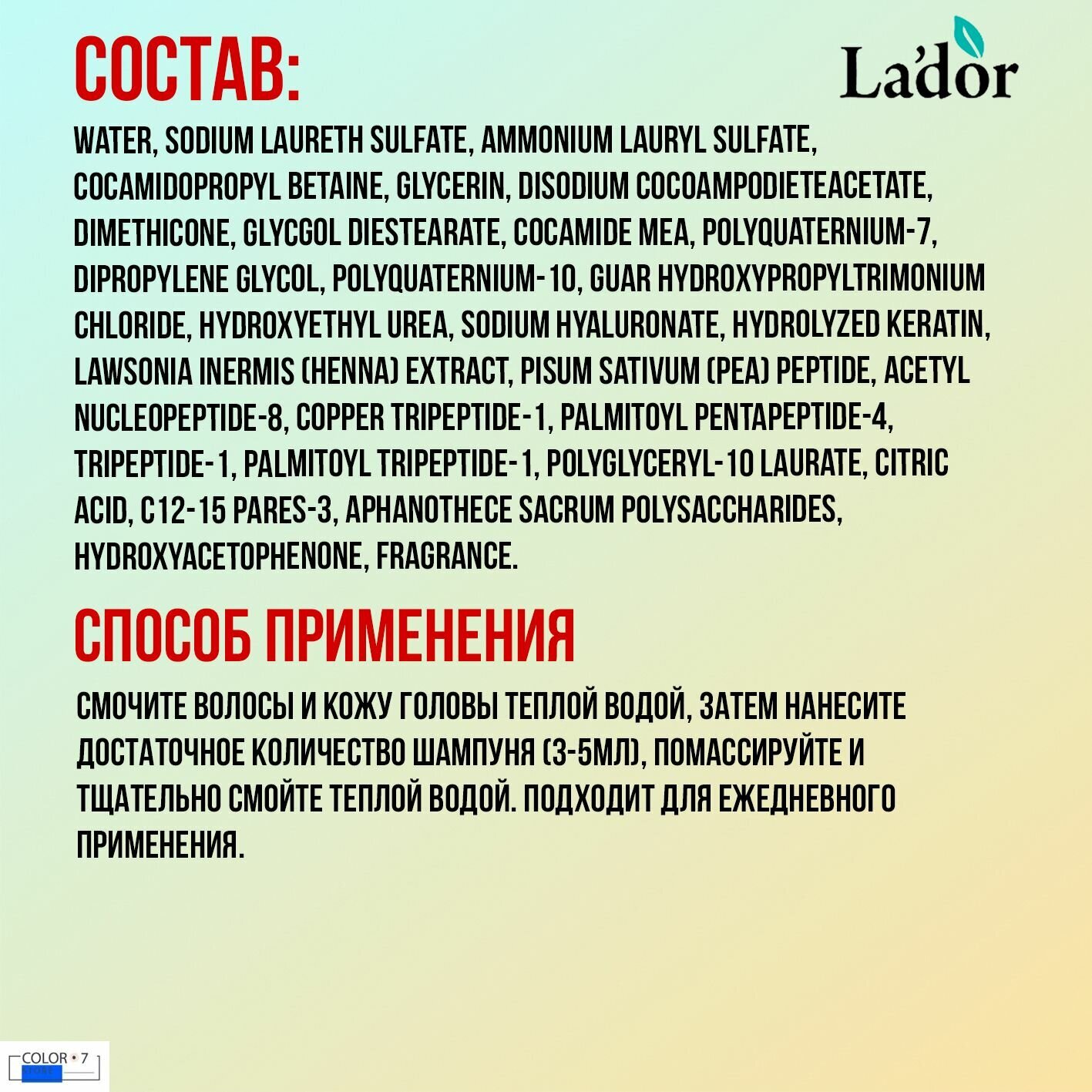 В составе эффективные ингредиенты: салициловая кислота, декспантенол и ниацинамид. Они помогают в борьбе против выпадения волос, делают их эластичными и здоровыми, а также снижают температуру кожи головы, восстанавливают ее гидролипидный баланс и удаляют омертвевшие клетки. А также 7 видов травяных экстрактов, которые освежают и напитывают даже чувствительную кожу головы.