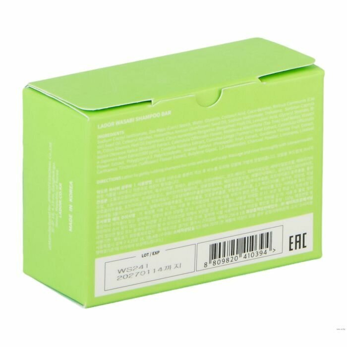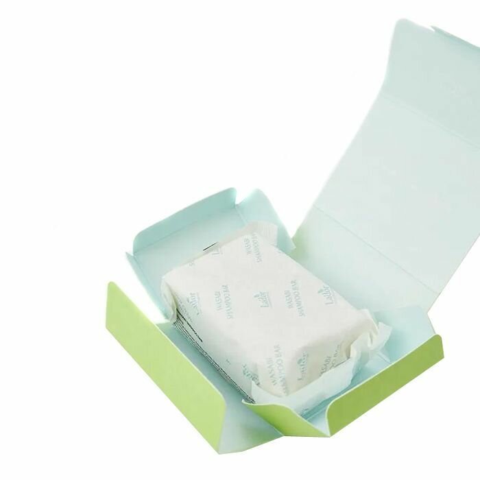 Шампунь LADOR Wasabi Shampoo Bar - это экологичный продукт для мытья головы, который успокаивает кожу и смягчает волосы.