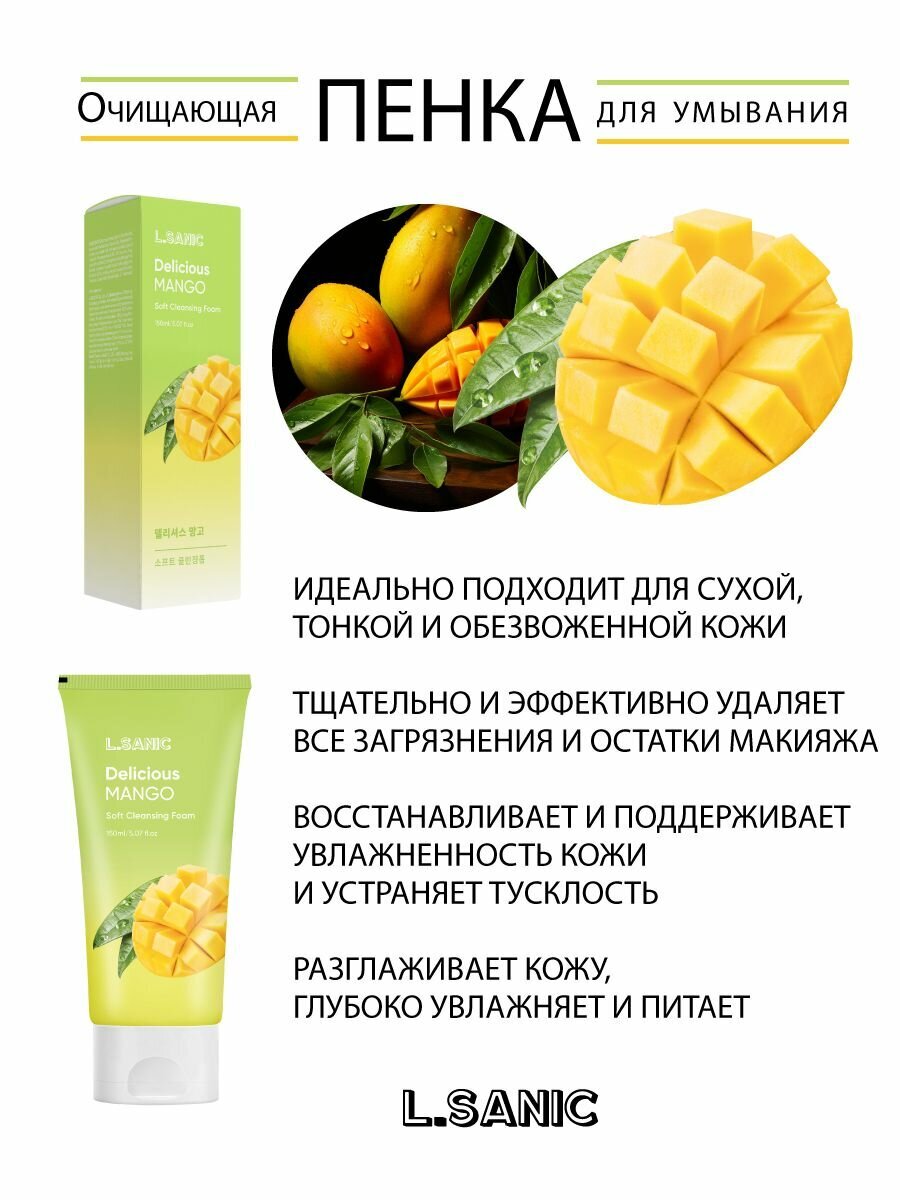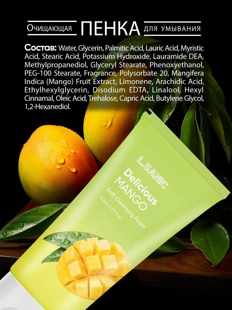 Нежная кремообразная очищающая пенка для умывания с сочным ароматом манго, благодаря инновационному сочетанию очищающих и ухаживающих компонентов тщательно и эффективно удаляет все загрязнения, остатки макияжа, восстанавливает и поддерживает оптимальный уровень увлажненности кожи, устраняет тусклость.