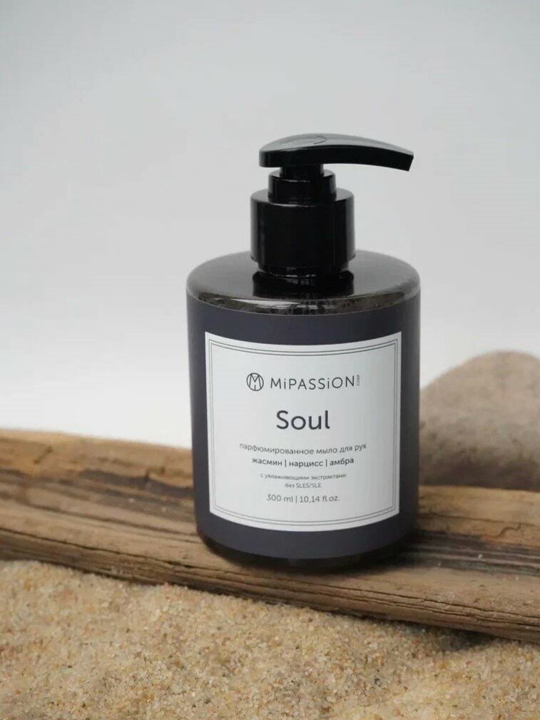 Выбирайте парфюмированное жидкое мыло MiPASSiON «Soul» для рук и тела, чтобы наслаждаться приятным ароматом, заботиться о своей коже и делать мир немного лучше.