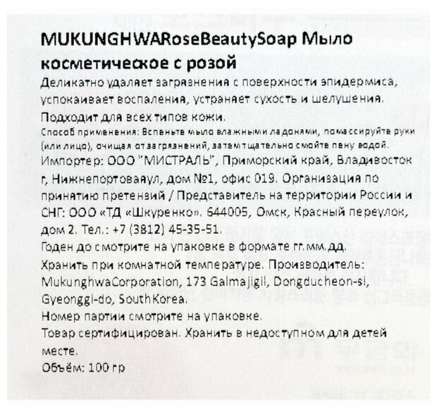 Выбирая мыло туалетное с розой MUKUNGHWA Rose Beauty Soap, вы получаете качественный продукт, который обеспечит вашей коже глубокое увлажнение, питание и защиту от негативных факторов окружающей среды.