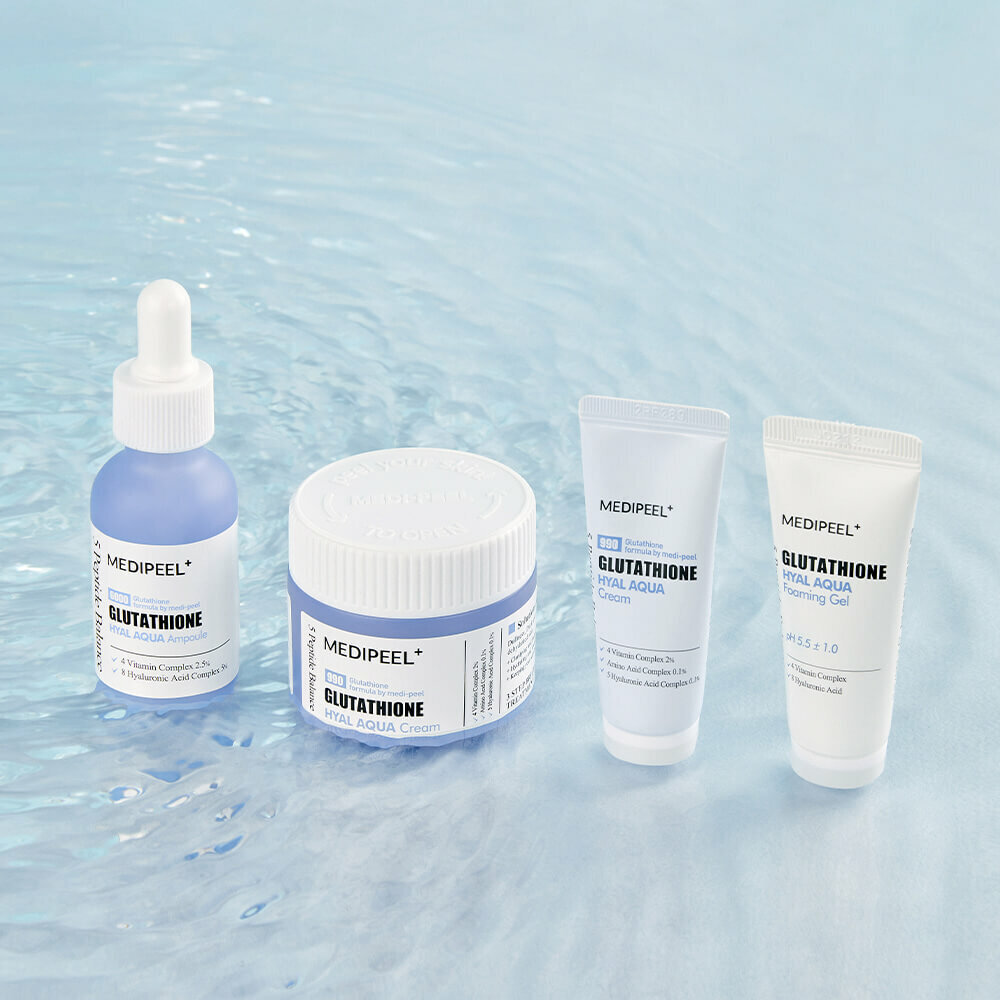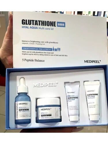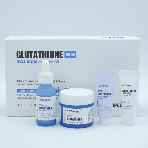 Набор увлажняющих средств для сияния кожи Medi-Peel Glutathione Hyal Aqua Multi Care Kit подходит для кожи любого типа, восстанавливает гидролипидный баланс, мягко осветляет и выравнивает тон. Помогает в борьбе с первыми признаками старения и способствует восстановлению эластичности.