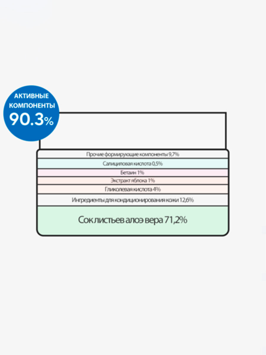 Сок алоэ вера 71,2% - Экстракт алоэ благодаря богатому составу (витамины А, С, Е) оказывает антибактериальный и противовирусный эффект, регулирует работу сальных желез, что позволяет эффективно использовать его для проблемной кожи.