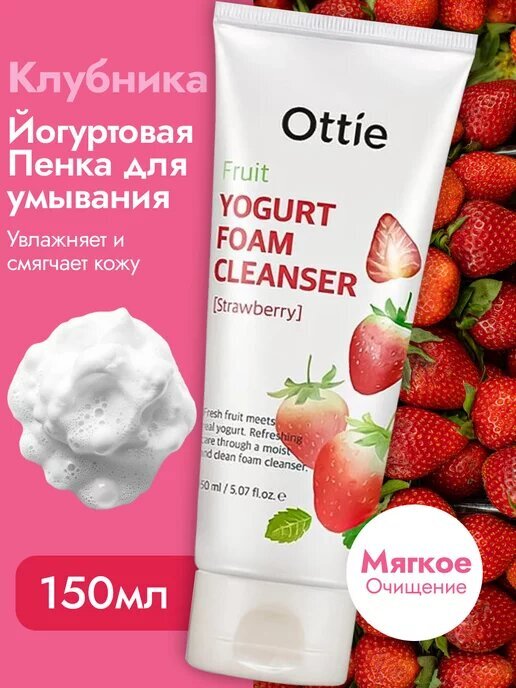 Пенка для умывания Ottie с йогуртом из натуральной клубники станет отличным выбором для тех, кто ищет эффективное и бережное средство для очищения кожи.