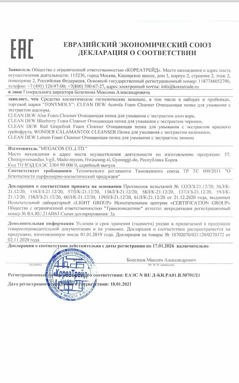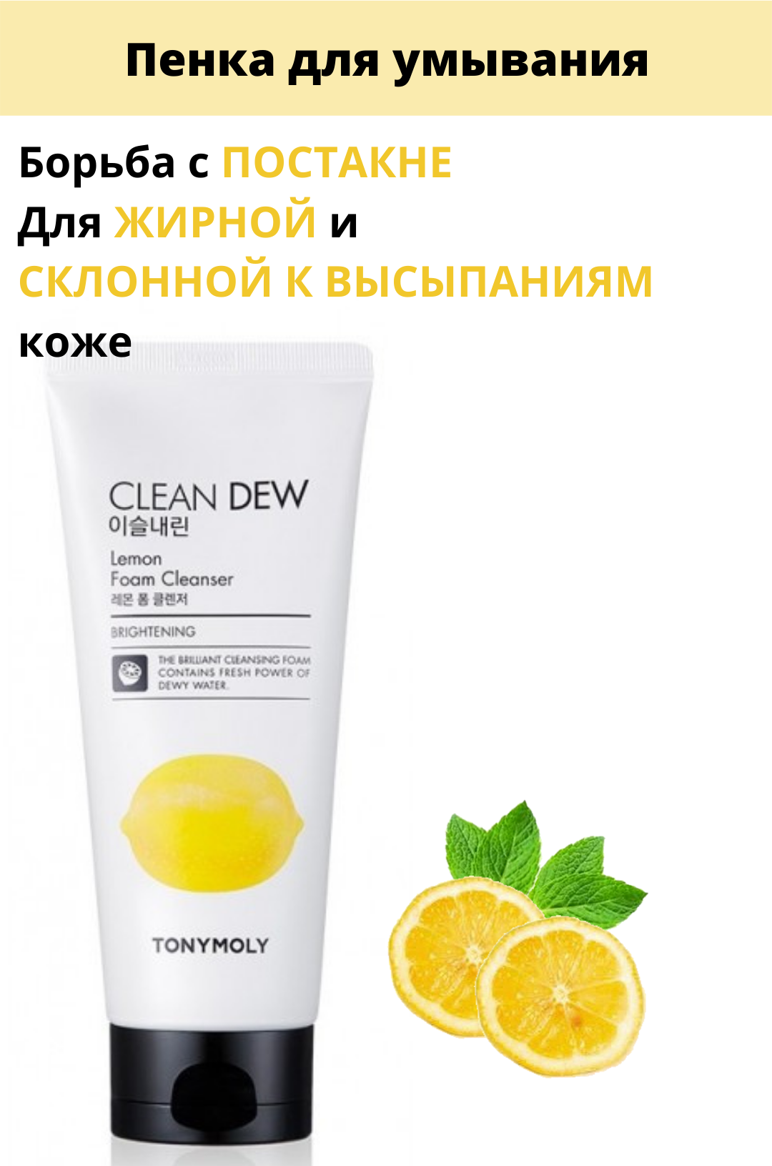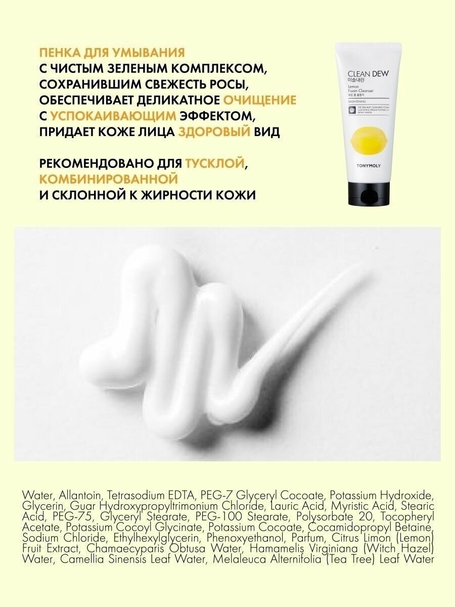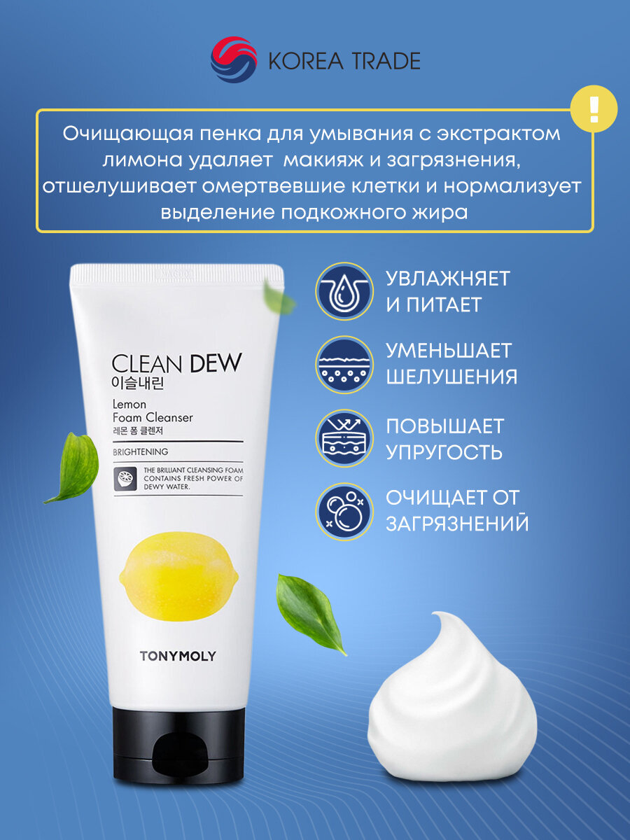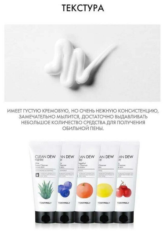 Обогащенная кислородом пенка с натуральными растительными экстрактами прекрасно очищает кожу и оставляет после умывание ощущение свежести, а также приятный легкий аромат. Средство Tony Moly Clean Dew Seed Foam Cleanser позволяет удалить с поверхности эпителия и пор излишки кожного жира, загрязнения, остатки макияжа. Легкая по своей текстуре пенка подходит для ежедневного использования, потому что, действуя мягко и эффективно, не сушит кожу.