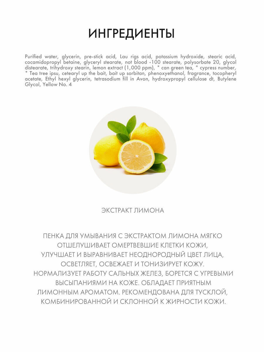 экстракт лимона – способствует выравниванию цвета кожи, придает ей благородный светлый оттенок.