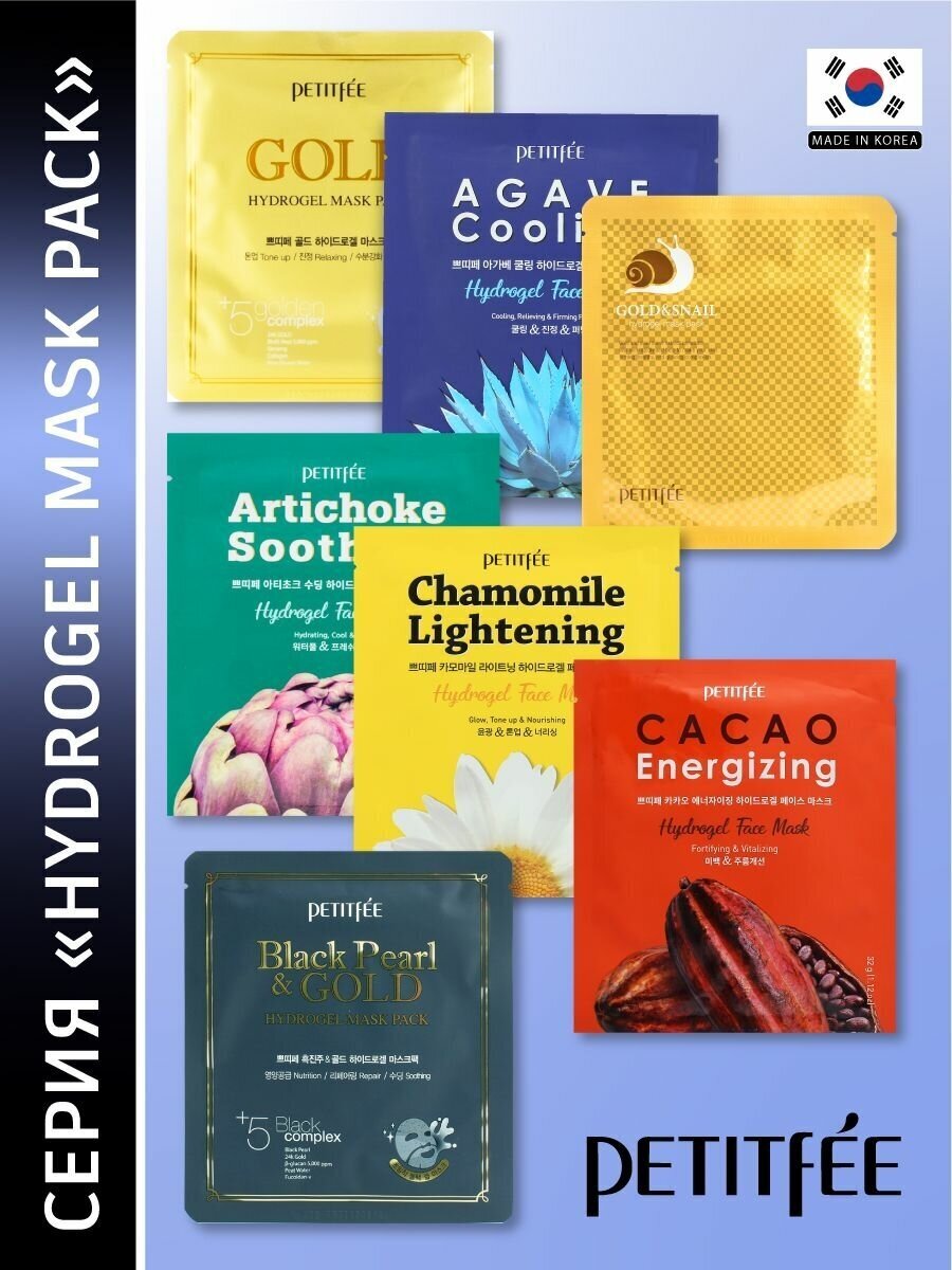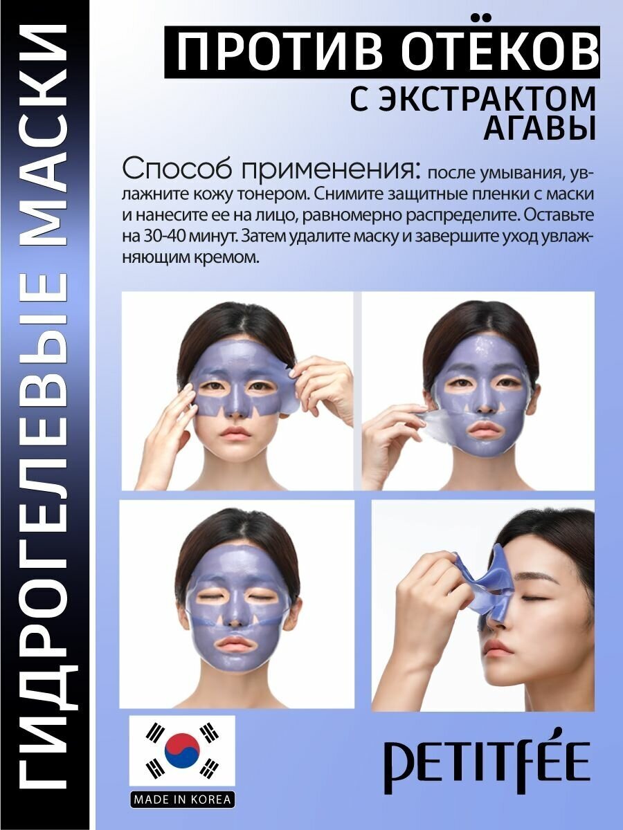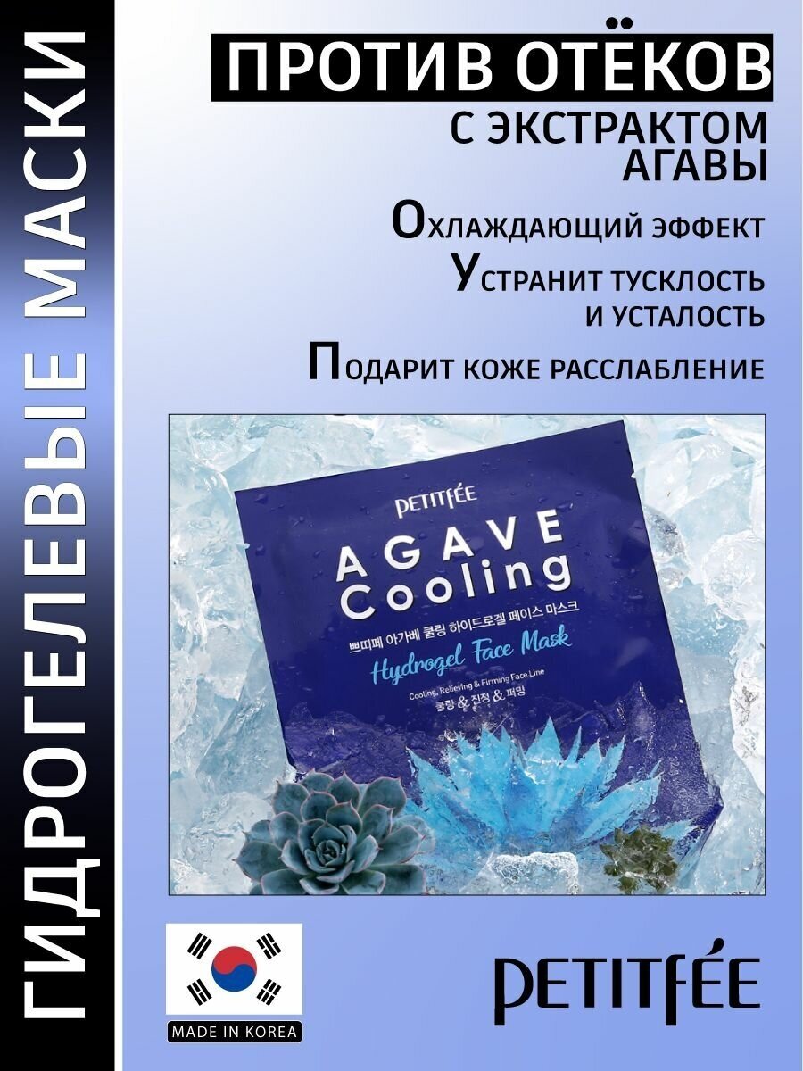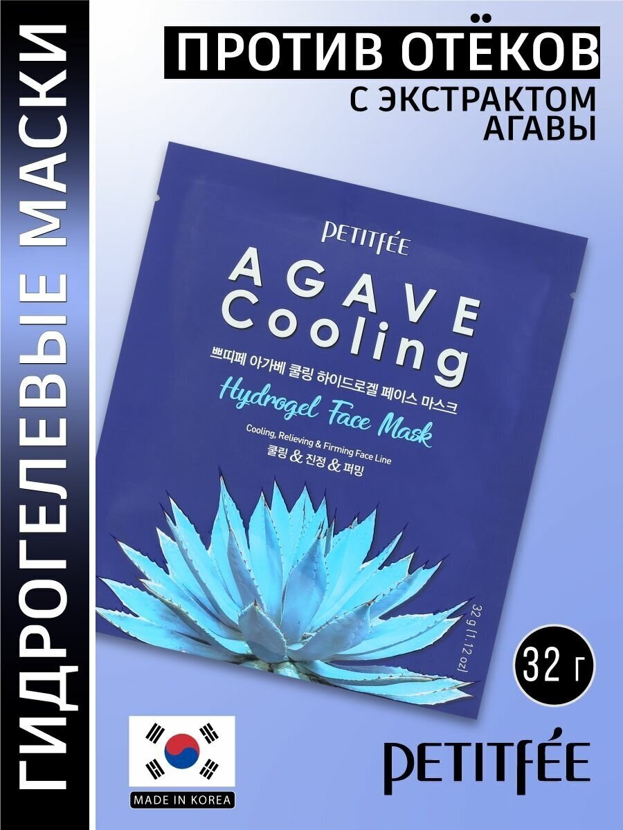 Охлаждающая гидрогелевая маска для лица Petitfee Agave Cooling Hydrogel Face Mask с экстрактом агавы и другими активными ингредиентами.