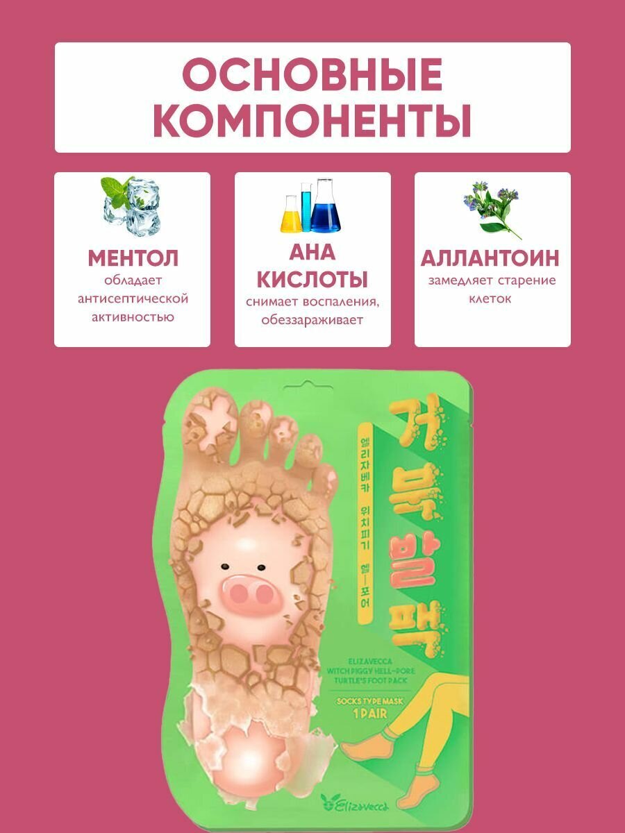Особенности Elizavecca Witch Piggy Hell-Pore Turtles Foot Pack включают: