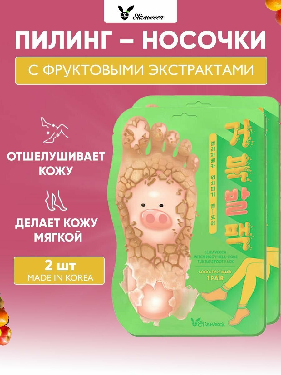 Подарите своим ножкам спа-уход, не выходя из дома, с отшелушивающими пилинг-носочками Elizavecca Witch Piggy Hell-Pore Turtles Foot Pack. Это отличный подарок для себя или близких на 8 марта, день рождения или любой другой праздник.
