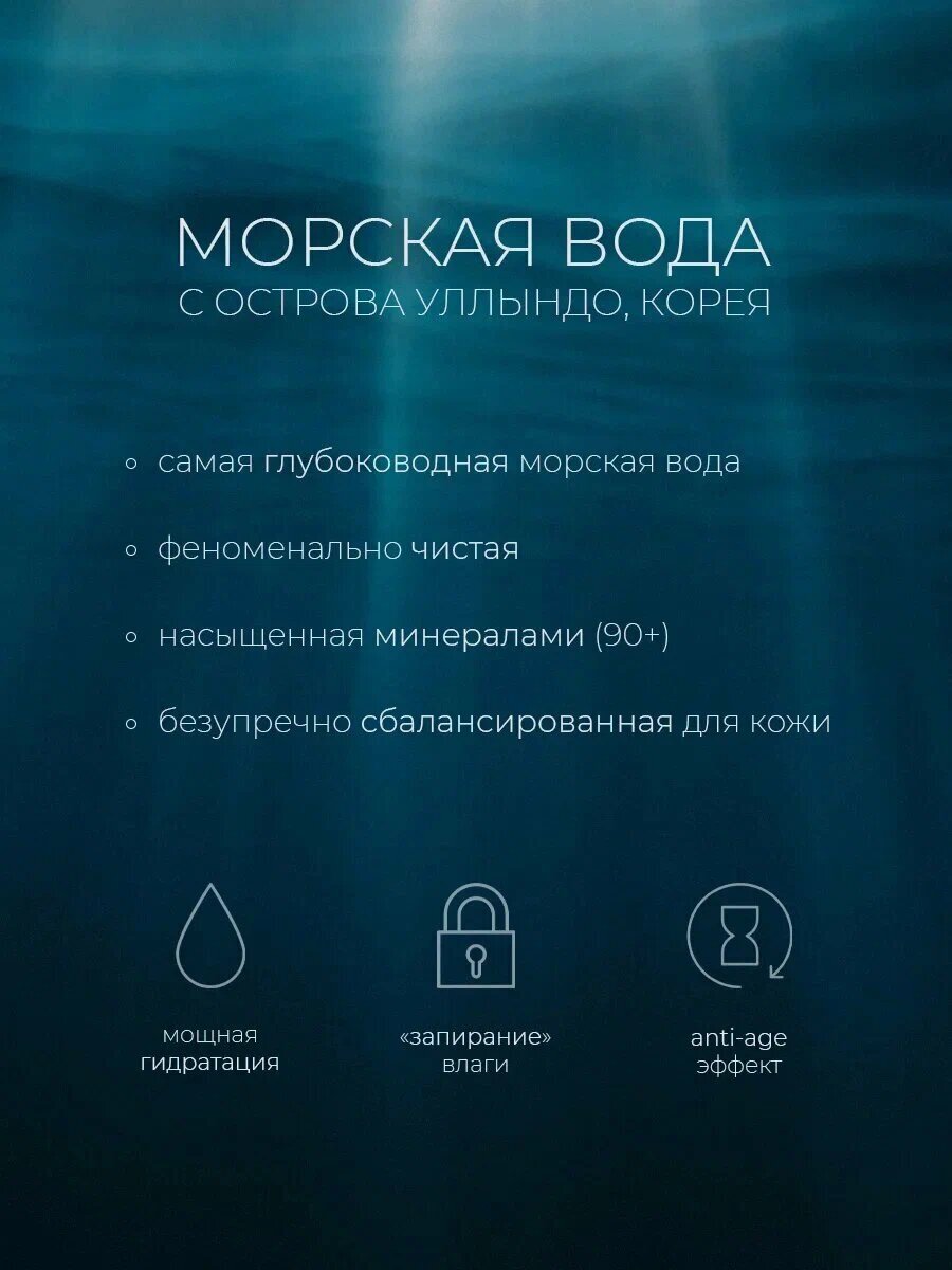 Глубинная морская вода с острова Токто содержит 72 вида полезных минералов, макро- и микроэлементов, которые не только поддерживают здоровье кожи, но также глубоко увлажняют, укрепляют иммунитет эпидермиса и продлевают молодость.