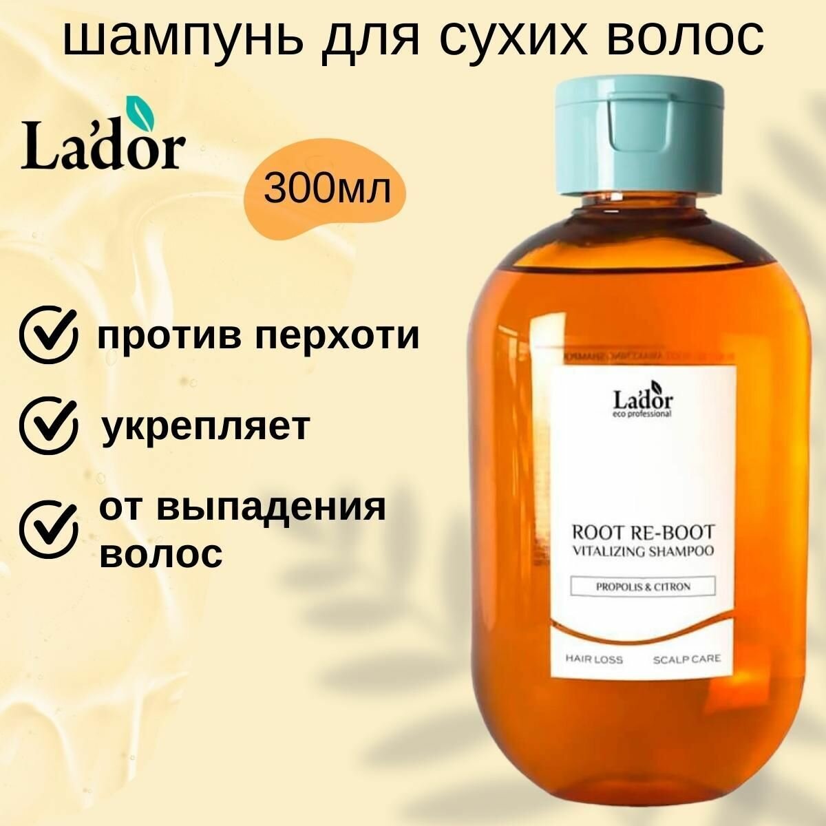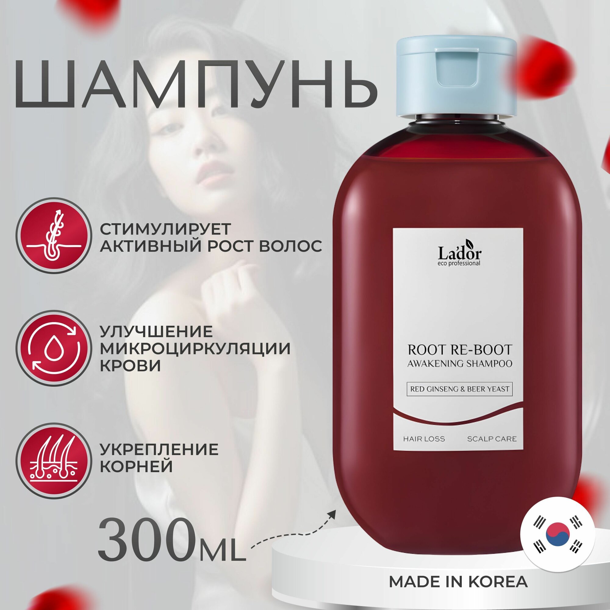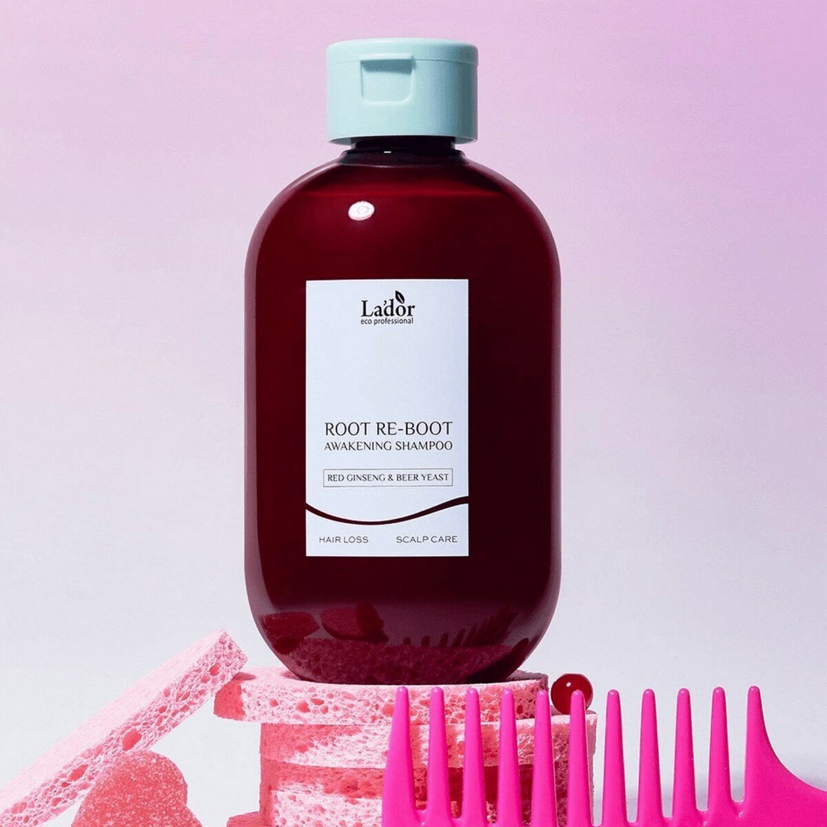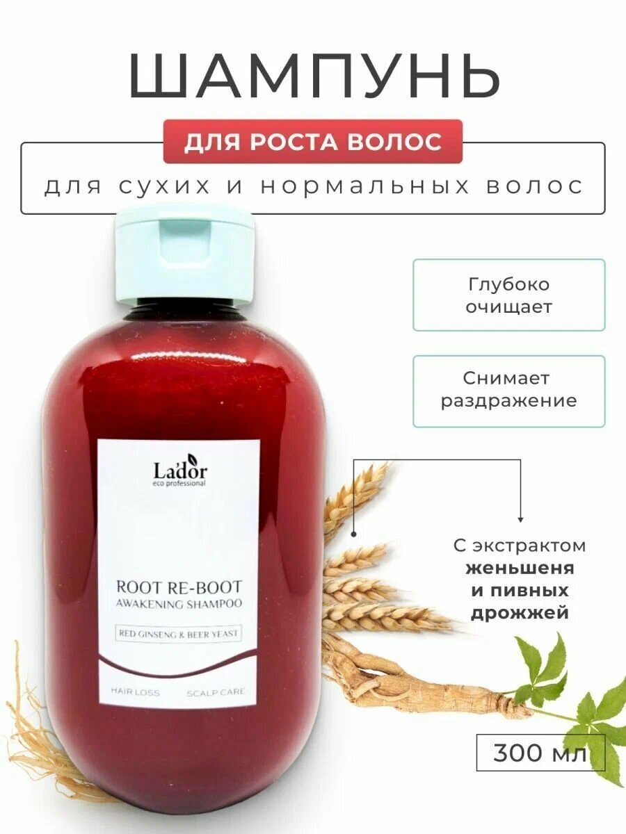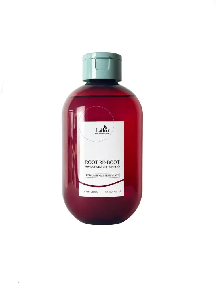 Шампунь Lador с женьшенем для роста волос Root Re-Boot Awakening Shampoo Red Ginseng & Beer Yeast – эффективное средство для ухода за волосами, которое обеспечивает их рост, блеск и эластичность. Объем составляет 300 мл.