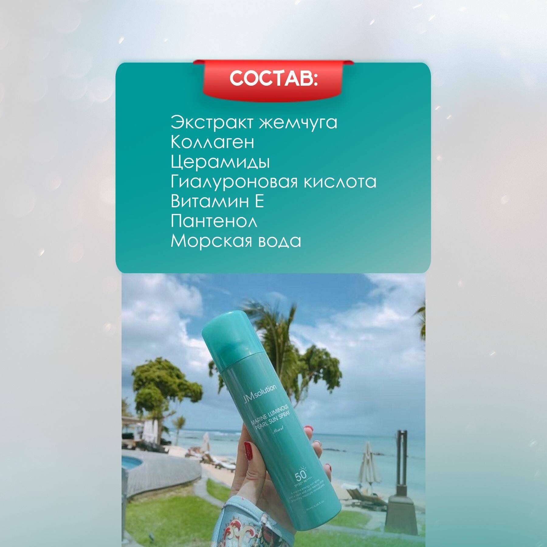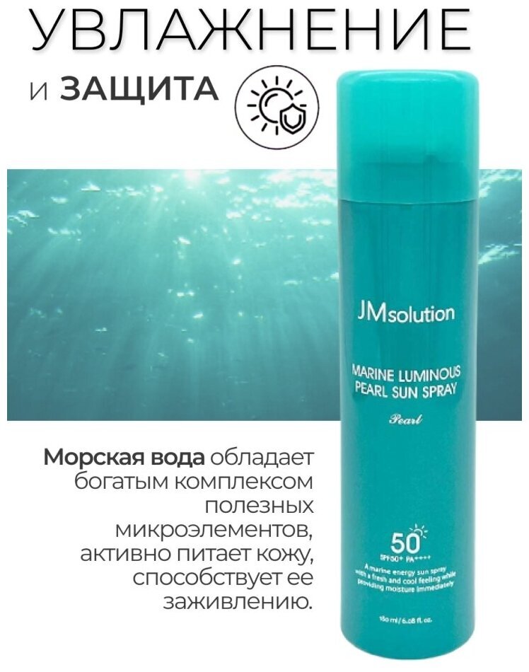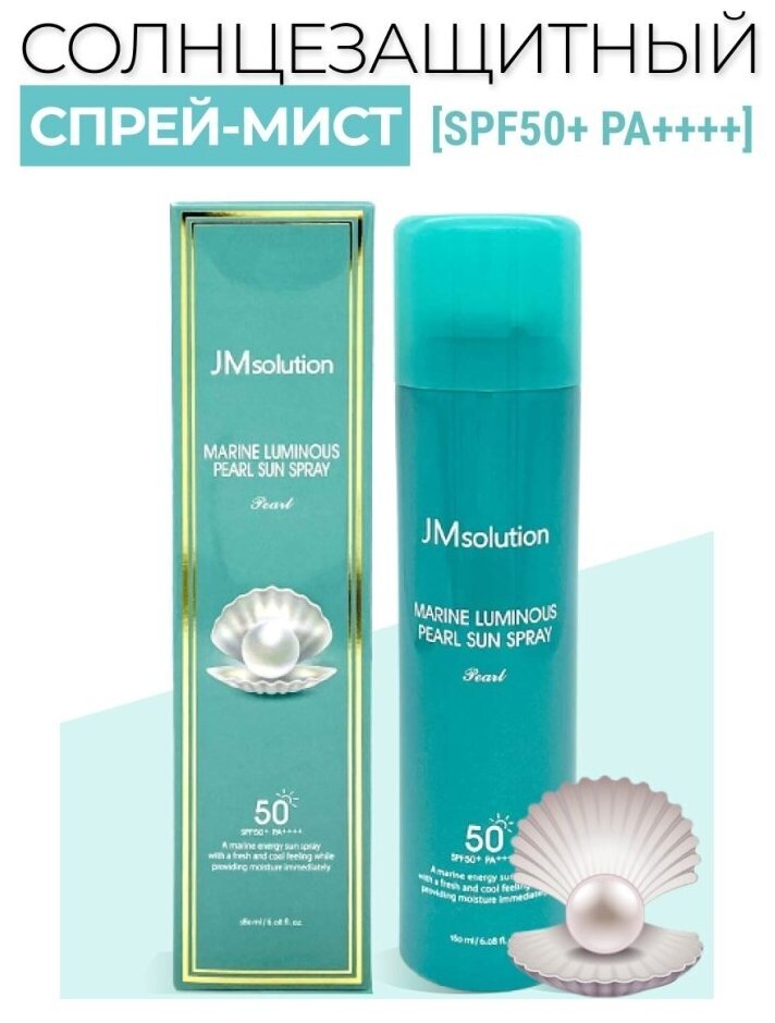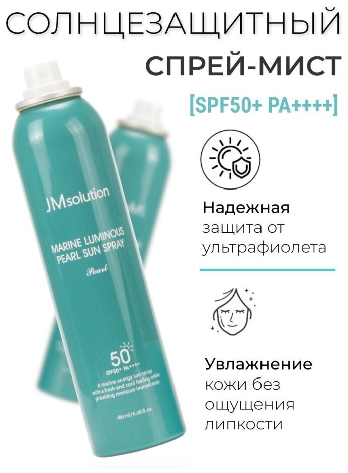 Солнцезащитный спрей с экстрактами водорослей и жемчугом JMsolution Marine Luminous Pearl Sun Protection Sun Spray SPF50+PA+++ защищает кожу от вредного воздействия от ультрафиолетового излучения (UVB и UVA излучения). Представляет собой многофункциональное универсальное средство нового поколения для лица и тела с высоким уровнем защиты от ультрафиолета.
