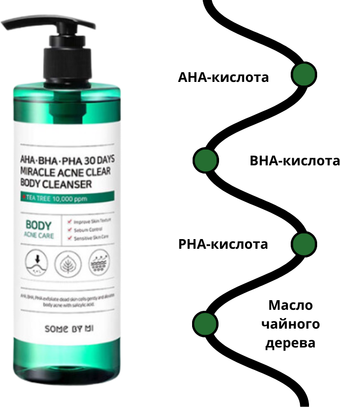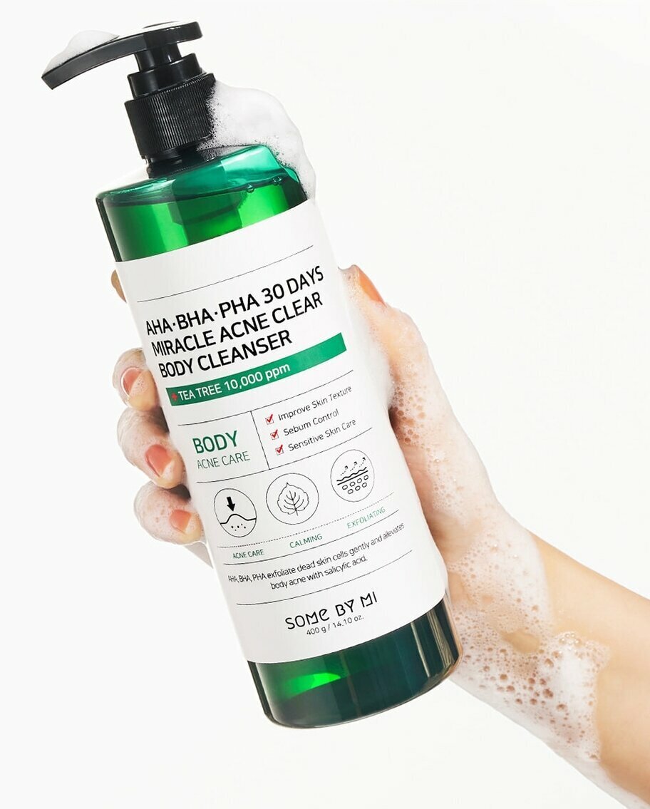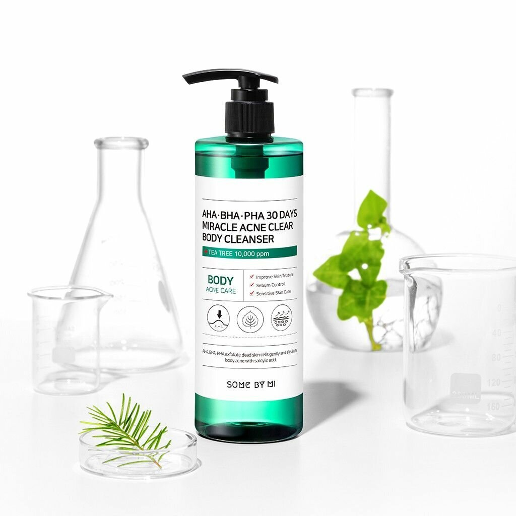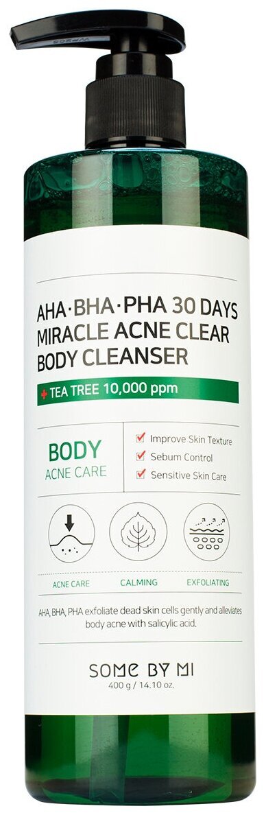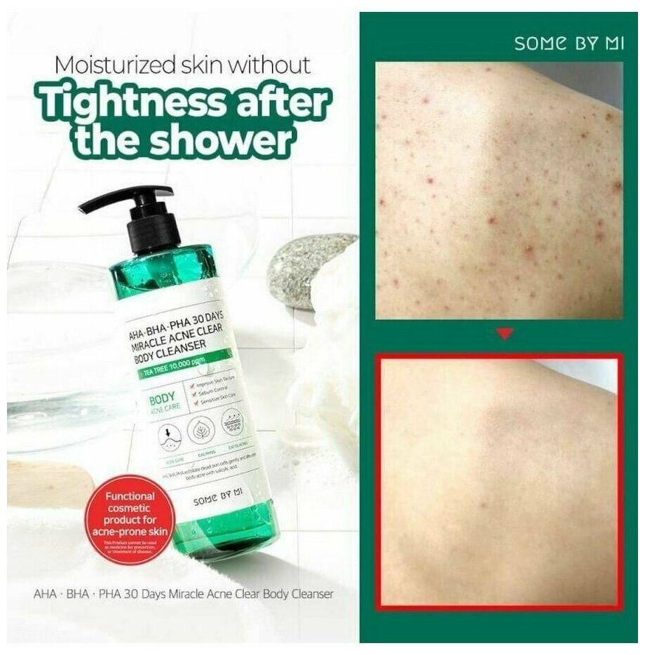 Очищающий гель для тела SOME BY MI AHA·BHA·PHA 30 DAYS MIRACLE ACNE CLEAR BODY CLEANSER - это эффективное средство для ухода за кожей, склонной к акне и воспалениям. Продукт разработан в Корее и содержит комплекс кислот, центеллу азиатскую и аргановое масло, которые помогают отшелушивать и удалять с поверхности кожи излишки себума, ороговевшие клетки и другие загрязнения.