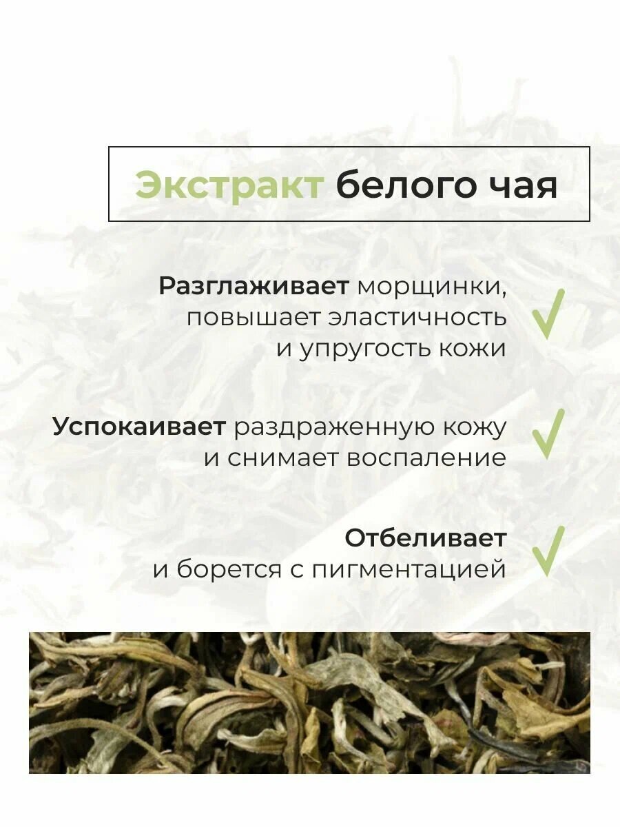 Основным активным ингредиентом пенки является экстракт белого чая, который ускоряет регенерацию клеток и замедляет процессы преждевременного старения. Благодаря этому кожа получает надежную защиту от негативного воздействия внешних факторов и интенсивное увлажнение.