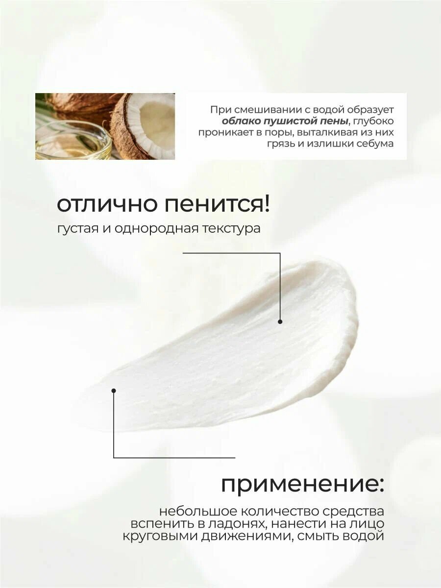 Применение пенки простое и удобное: достаточно вспенить средство во влажной ладони, нанести массажными движениями на кожу лица, шеи и области декольте, затем смыть теплой водой и продолжить уход за кожей.