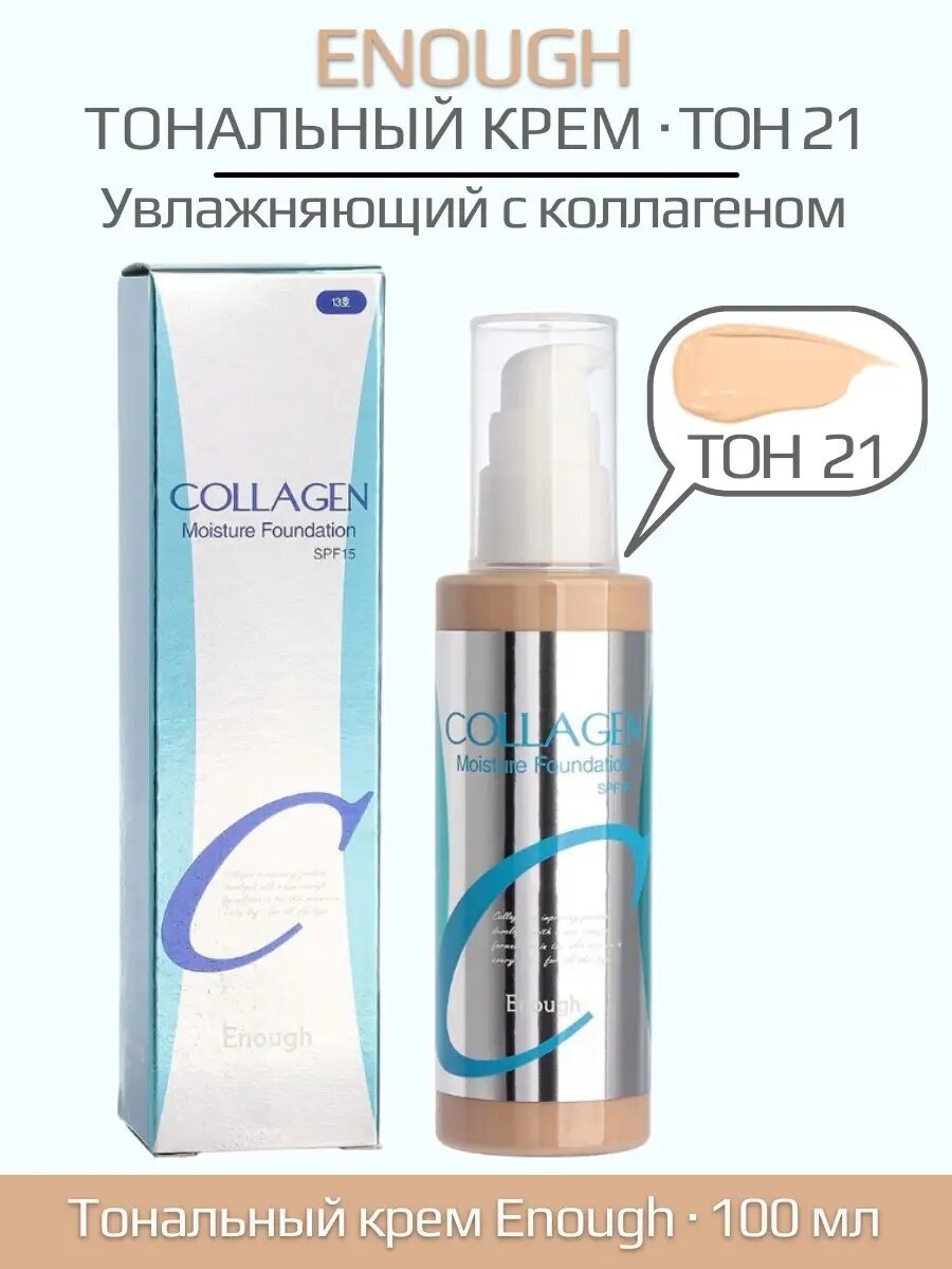 Тональный крем для лица Enough Collagen Moisture Foundation SPF 15 с эффектом фотошопа. Мгновенно делает лицо гладким, скрывает покраснения, при этом остается совершенно незаметным весь день! Даже проблемная кожа выглядит ухоженной и свежей! Маскирующий и корректирующий эффект скроет пигментные пятна и покраснения, шелушения, расширенные поры и прыщи, круги (синяки) на веках и мешки под глазами, бледность и другие проблемные участки. Крем тонирующий незаменим для создания безупречного макияжа без черных точек и красноты.