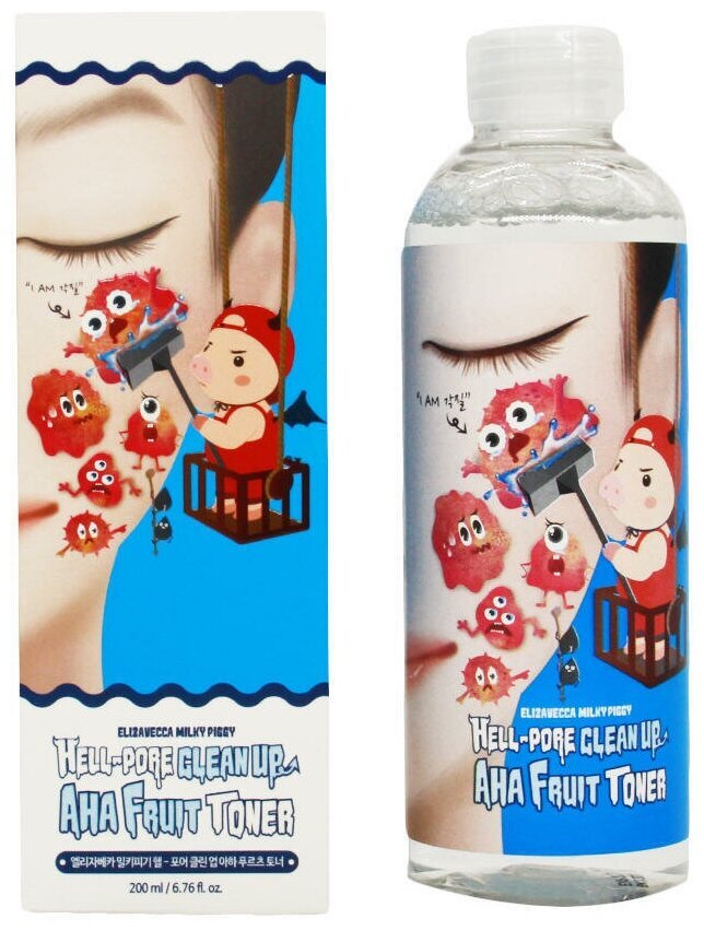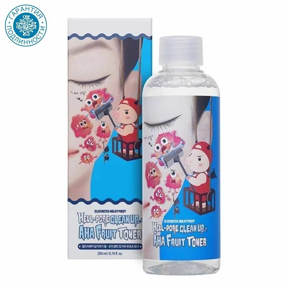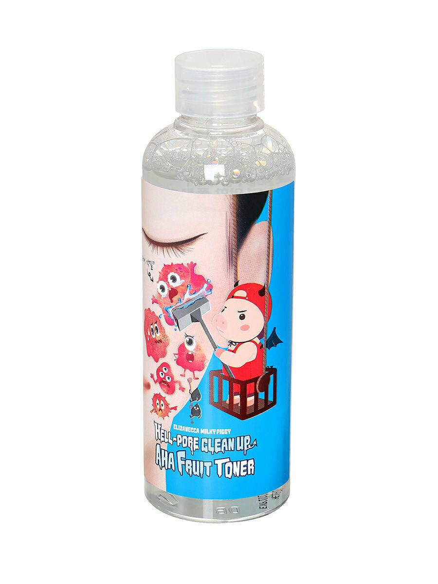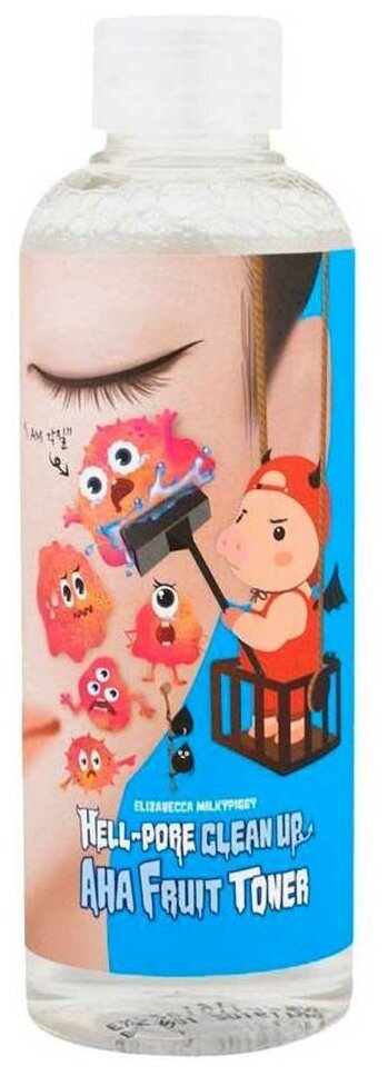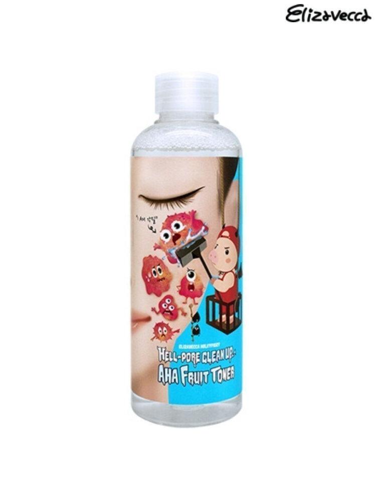 Глубоко очищающий тоник-пилинг для лица Elizavecca Hell-Pore Clean Up Aha Fruit Toner с АНА и ВНА кислотами. Средство глубоко очищает поры, удаляет следы тональных средств без вреда для кожи, избавляет от отмерших клеток и смягчает кожу лица. АНА кислоты мягко воздействуют на тонкую, сухую и возрастную кожу. BHA кислота рекомендуется для жирной кожи, склонной к прыщам и комедонам. Сочетание AHA и BHA кислот в одном средстве делает его универсальным, подходящим и для сухой, и для жирной кожи.