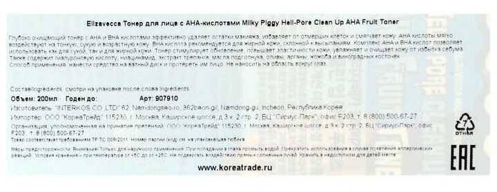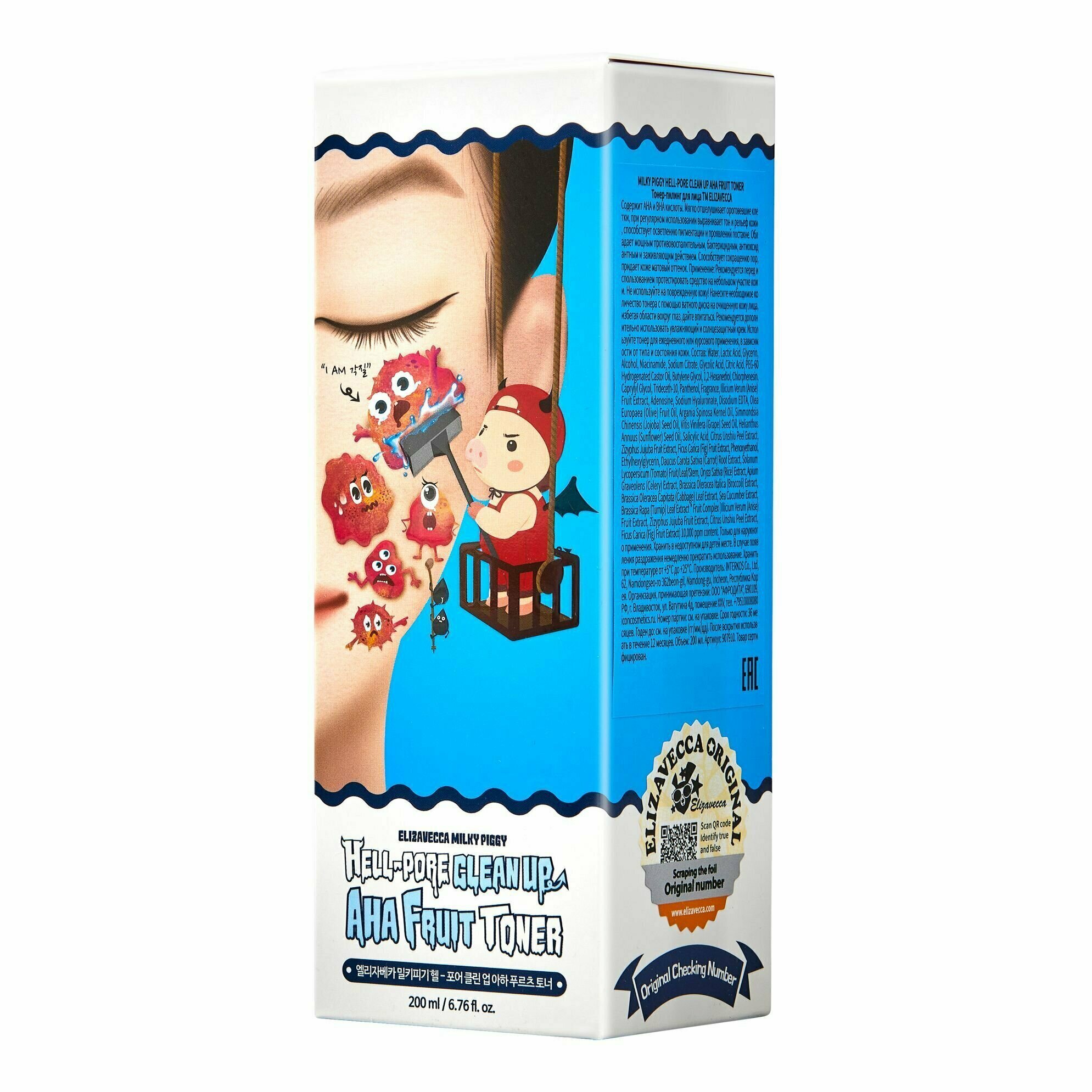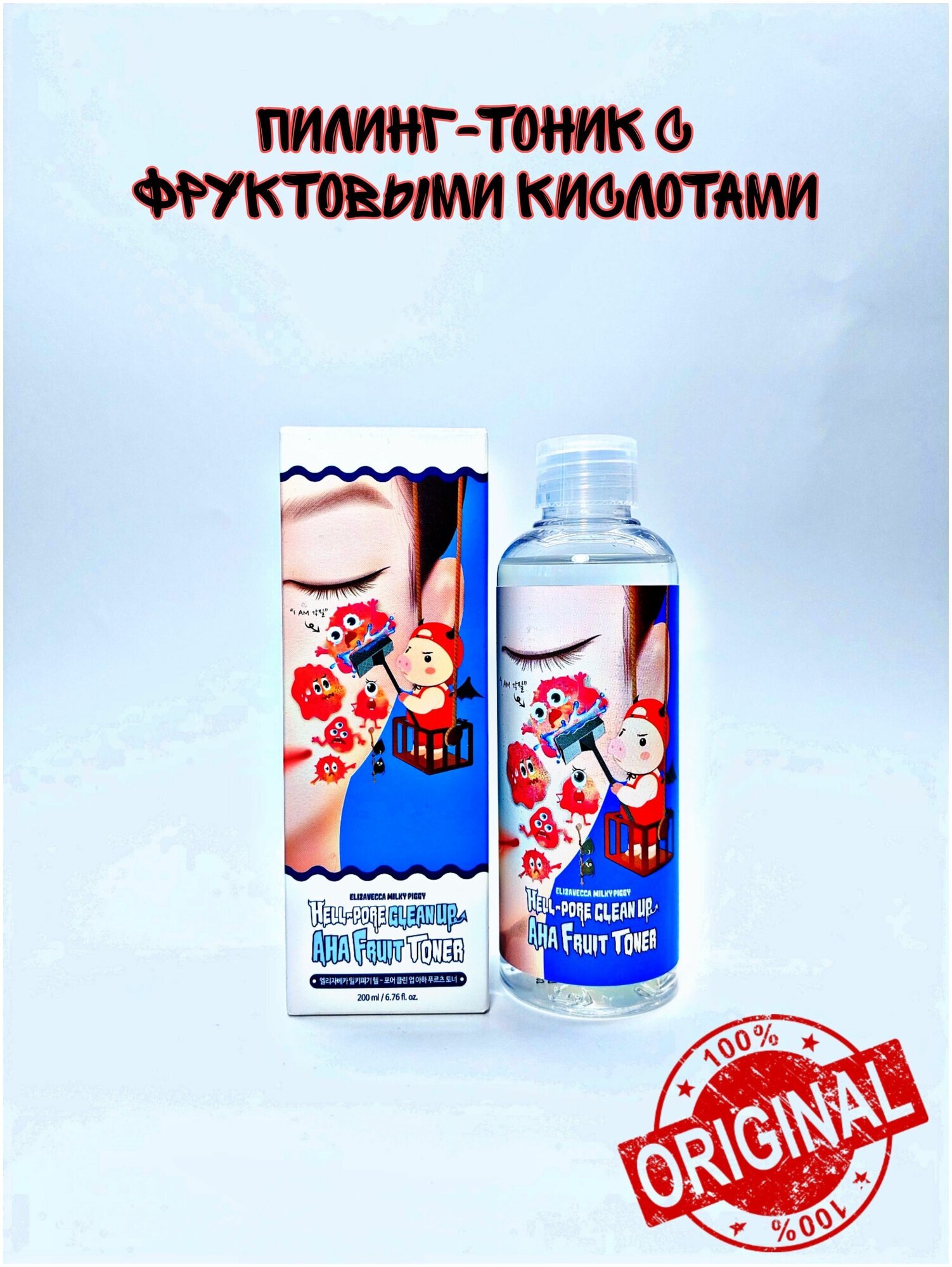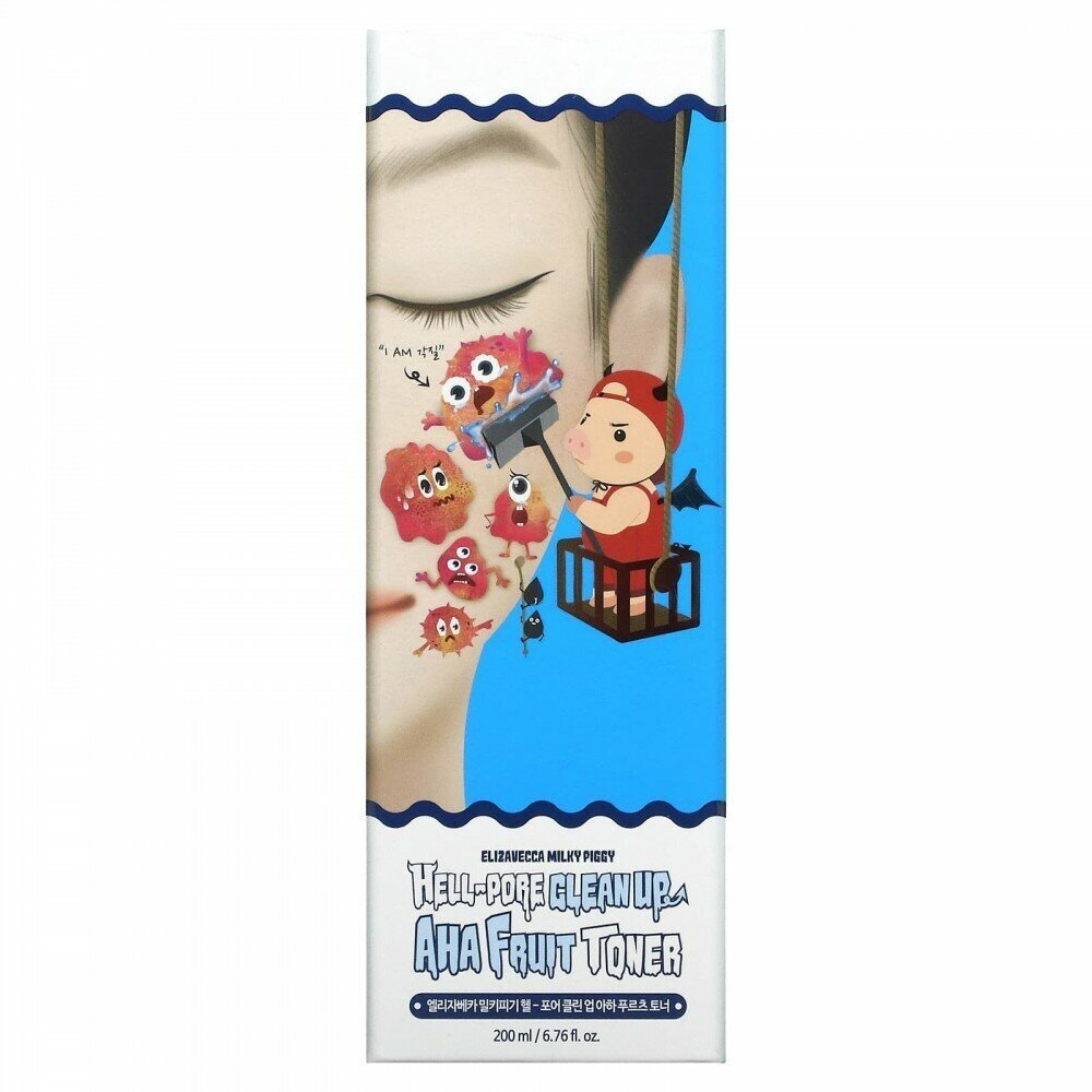 Глубоко очищающий тоник-пилинг для лица Elizavecca Hell-Pore Clean Up Aha Fruit Toner с АНА и ВНА кислотами. Средство глубоко очищает поры, удаляет следы тональных средств без вреда для кожи, избавляет от отмерших клеток и смягчает кожу лица. АНА кислоты мягко воздействуют на тонкую, сухую и возрастную кожу. BHA кислота рекомендуется для жирной кожи, склонной к прыщам и комедонам. Сочетание AHA и BHA кислот в одном средстве делает его универсальным, подходящим и для сухой, и для жирной кожи.