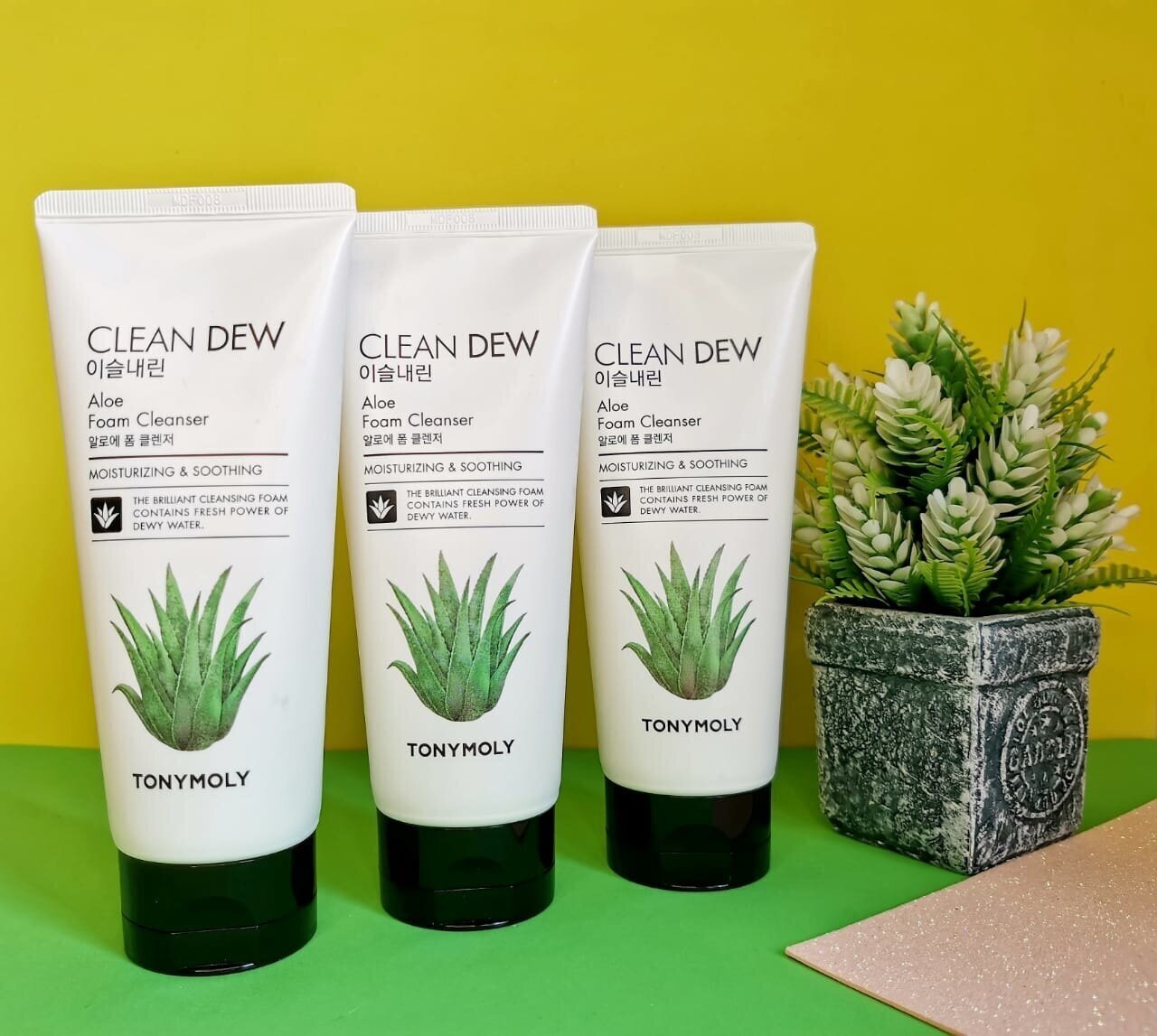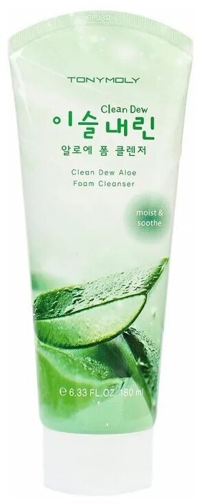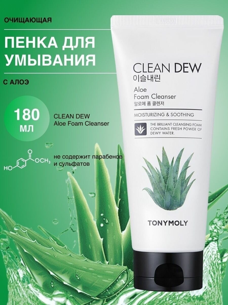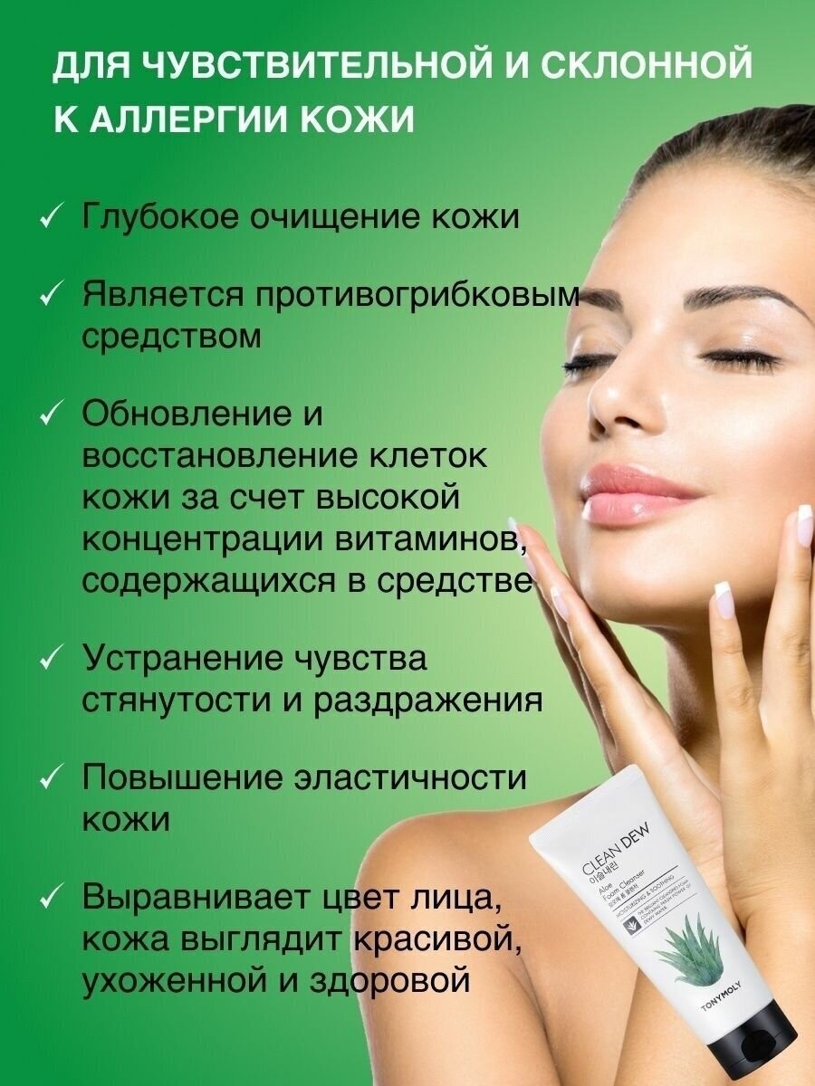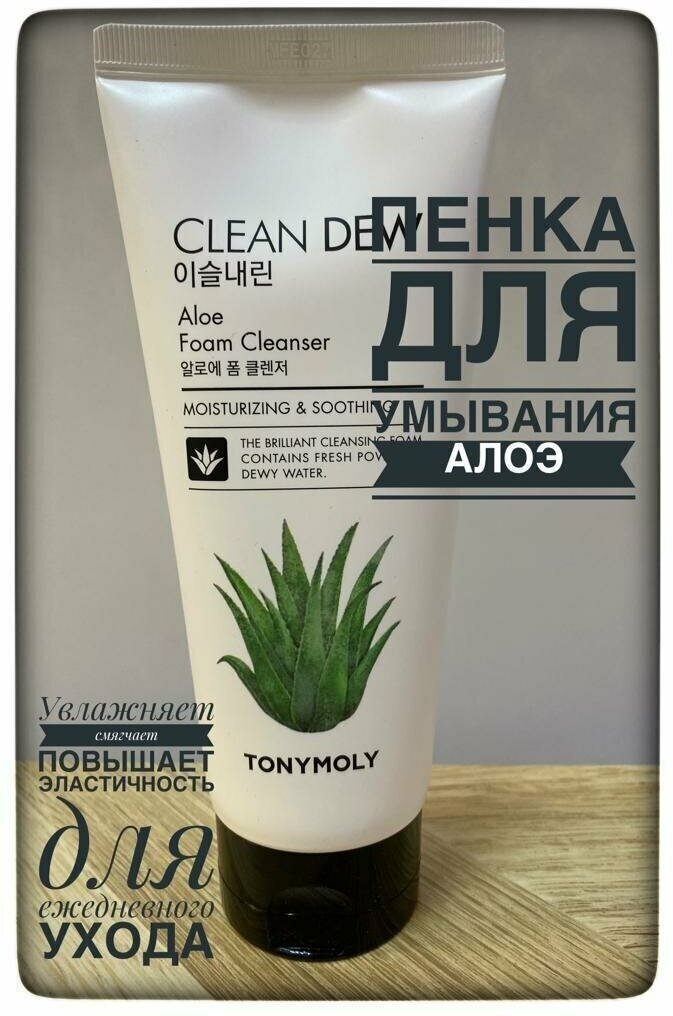 Успокаивающая пенка Clean Dew Aloe Foam Cleanser с экстрактом алоэ от популярного корейского бренда Tony Moly сделает процедуру умывания комфортной, бережно очищая кожу от макияжа, себума и загрязнений. Формула включает ряд активных компонентов, которые оказывают благоприятное влияние на кожу: Экстракт алоэ вера давно известен своими поистине волшебными целебными свойствами и не зря настолько популярен. Алоэ является природным антиоксидантом, эффективно восстанавливает поврежденную и раздраженную кожу, оказывает успокаивающее, увлажняющее и заживляющее действие, устраняет зуд, воспаление и покраснения, смягчает огрубевшие участки. Универсальность алоэ заключается в том, что он идеально работает с любым типом кожи. Гидролат экстрактов кипариса, листьев камелии и чайного дерева оказывает увлажняющее, антибактериальное, противовоспалительное, вяжущее и заживляющее действие. Такой комплекс эффективно выводит шлаки и токсины, выравнивает тон кожи, уменьшает выделение кожного жира, сохраняя свежесть и ощущение чистоты более длительное время. Токоферол (Витамин Е) превосходный эмолент, который смягчает, питает и увлажняет кожу, оказывает успокаивающее и антиоксидантное действие. После умывания кожа наполняется жизненной энергией, обретает свежесть и чистоту. Косметическое средство обладает массой положительных свойств: не вызывает аллергию и раздражение, подходит для любого типа кожи, не пересушивает верхний слой эпидермиса, экономно расходуется, защищает от пагубного воздействия окружающей среды, имеет натуральный состав. Пена от Tony Moly имеет плотную кремовую текстуру, нежный растительный аромат. Хорошо пенится, создавая воздушную массу, которая бережно очищает кожу. Купить корейскую косметику Tony Moly можно в нашем интернет-магазине «Aumishop». Здесь представлена оригинальная продукция по цене производителя. Все позиции протестированы, имеют сертификат качества и одобрены дерматологами. Формула исключает парабены, красители, продукты животного происхождения и другие вредные вещества.