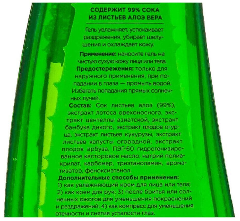 Универсальное средство для лица и тела, для взрослых и детей, для мужчин и женщин - несмываемый универсальный гель с 99% содержанием экстракта сока алоэ.