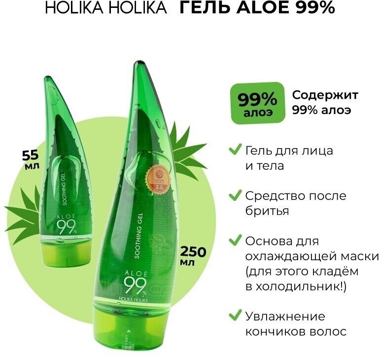 HOLIKA HOLIKA ALOE гель алоэ 99% универсальный - для всех типов кожи.